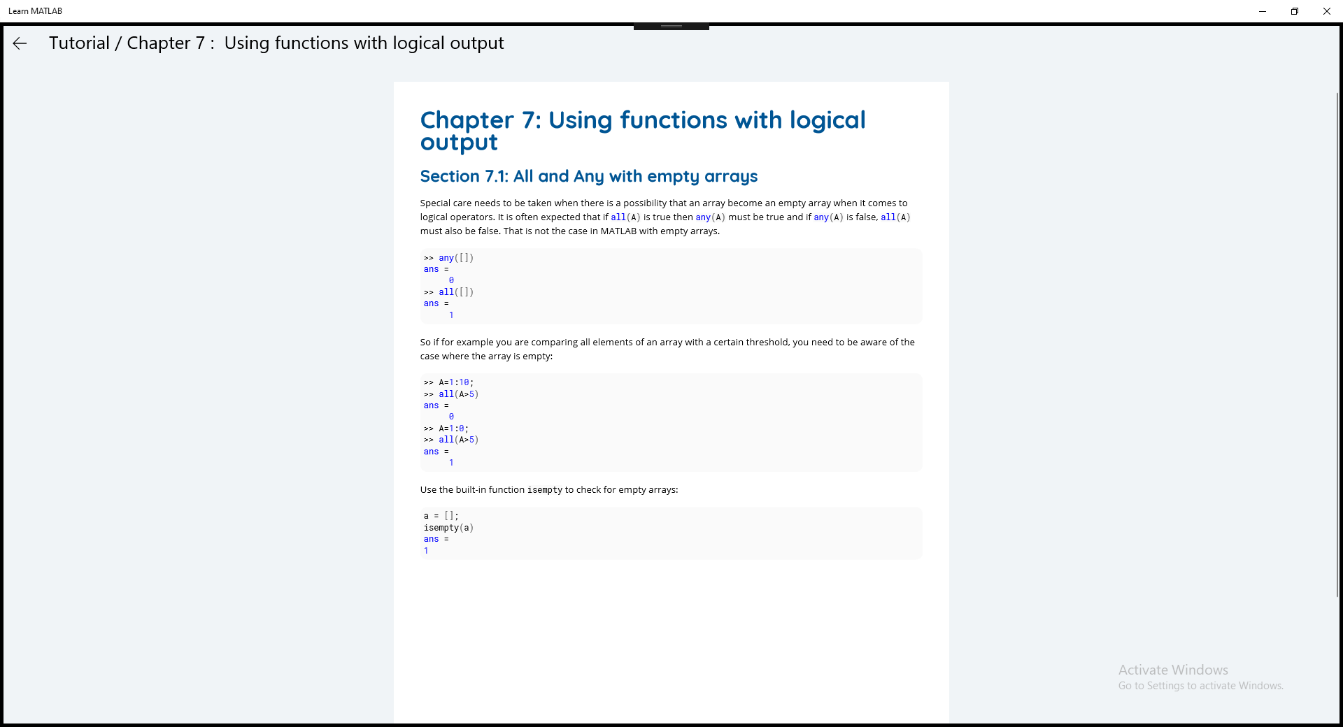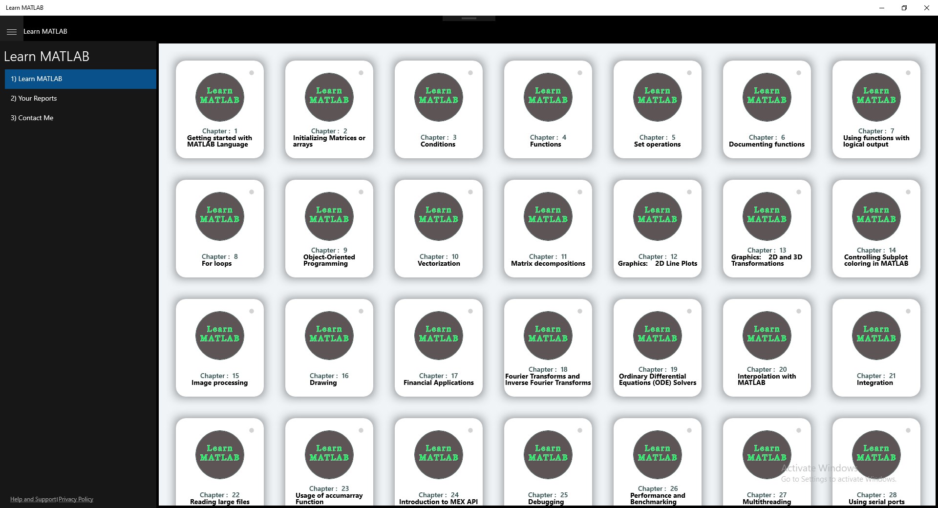 This app contains tutorials and reports for the all who want to Learn MATLAB.