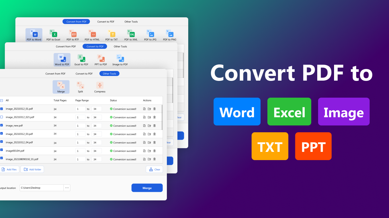 • Convert Word, Excel, PowerPoint, or Image files to PDF.