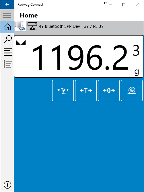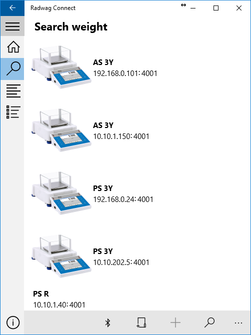 RADWAG Connect is a software designed to work with any Windows 10 devices. This tool allows connecting to any scale or balance produced by RADWAG via local network. All of the basic functions of your device are supported: taring, zeroing, taking measurements and exporting them. All that using your Windows 10 PC, laptop, tablet or smartphone.