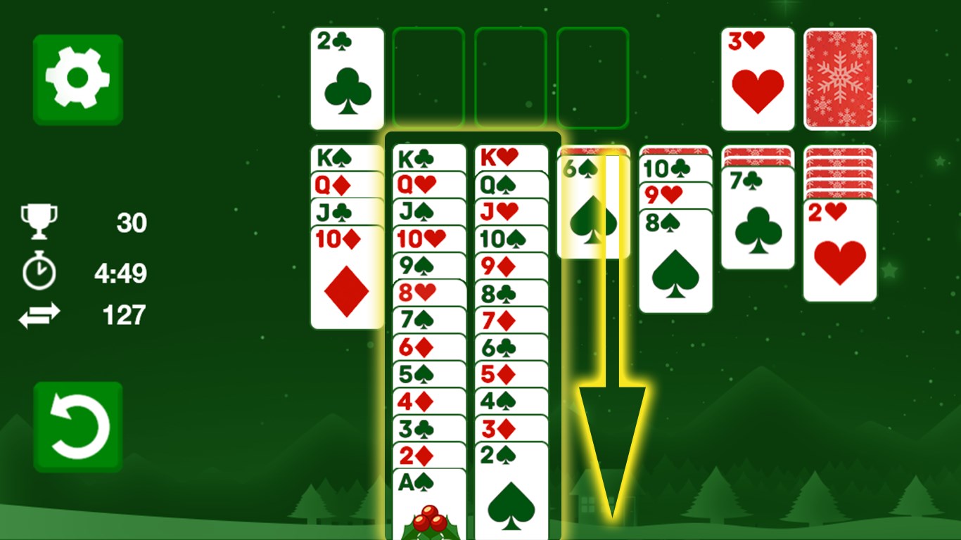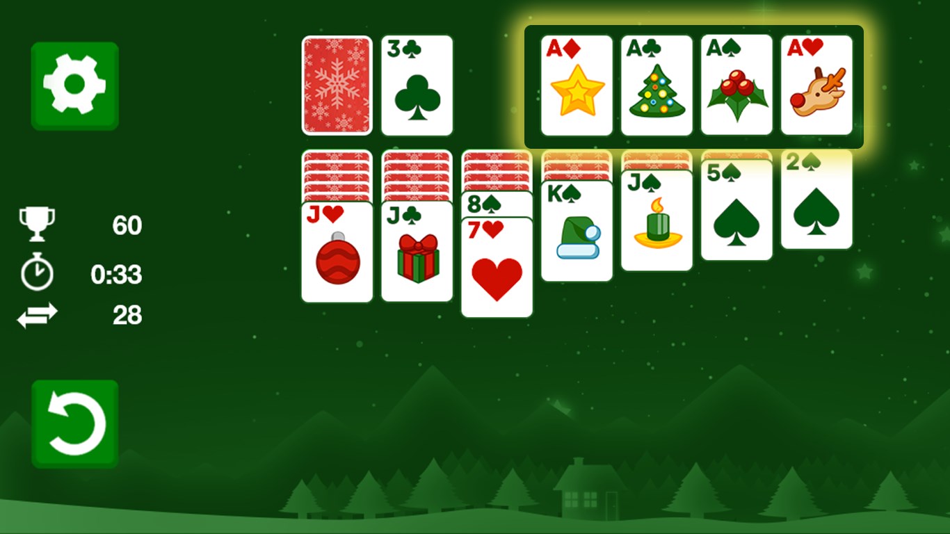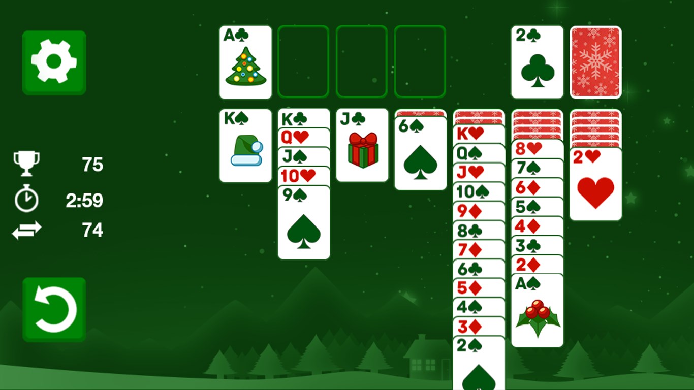Winter is coming, so get comfy and relax with a cute Christmas version of the timeless card classic during the holiday season! Objective of this Solitaire Klondike game is to move all cards onto the four foundation piles, sorted by suit and rank in ascending order from Ace to King. On the field, cards can only be sorted in descending order alternating colors. Can you earn a high score?