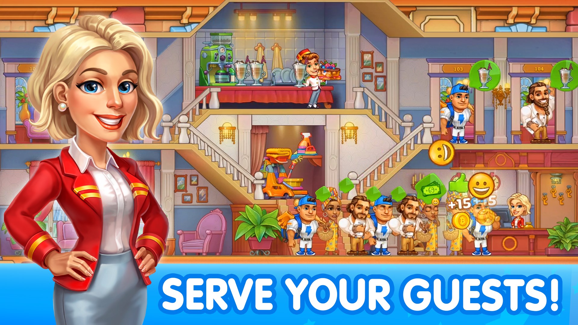 The most real hotel scene, the most fashionable home design, and the most delicious food will make you feel the hottest hotel mania and cooking fever! From small hotels to luxury hotels, fast food to top food, open your hotels all around the world and write your hotel story&cooking diary! Thousands of crazy customer dash into your hotel and you need to manage your doorman and waitress to serve them!