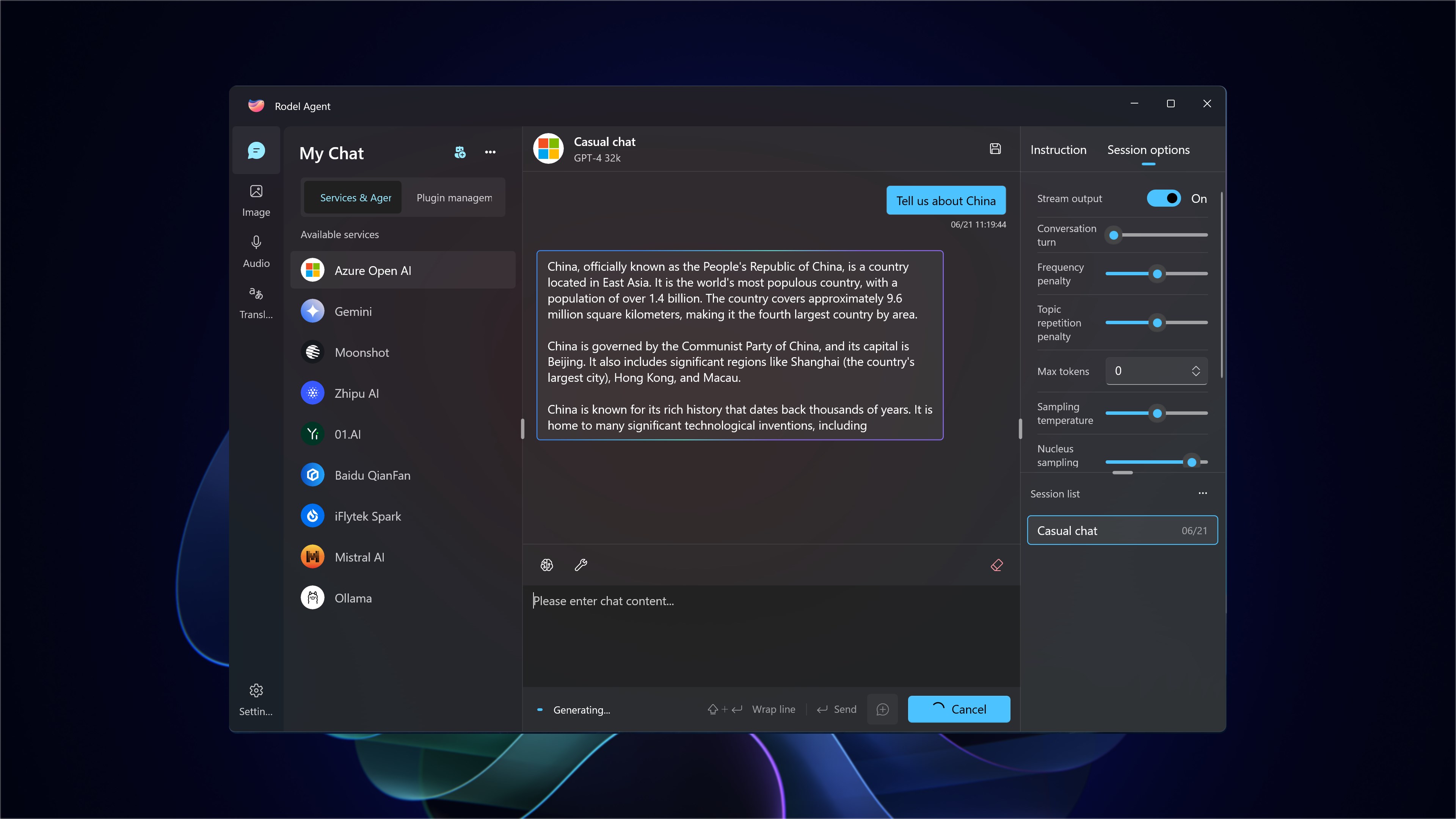 Rodel Agent integrates AI functions such as chat, document and image generation, text-to-speech, and machine translation, and supports mainstream AI providers. We hope this can help you.