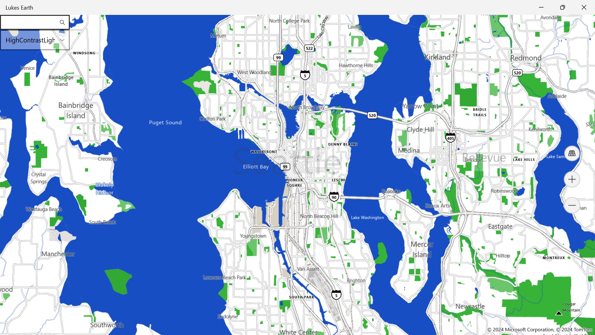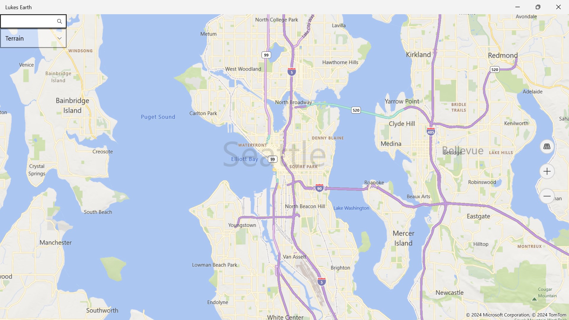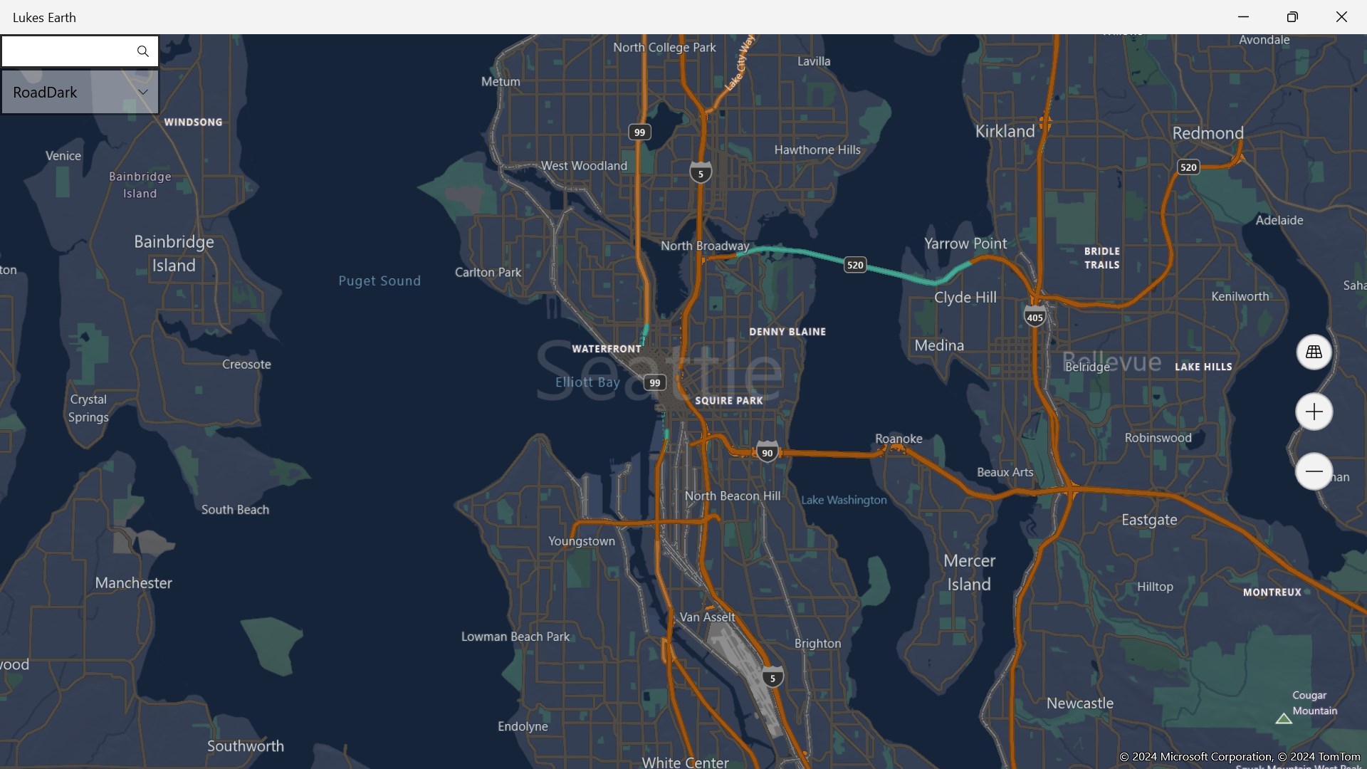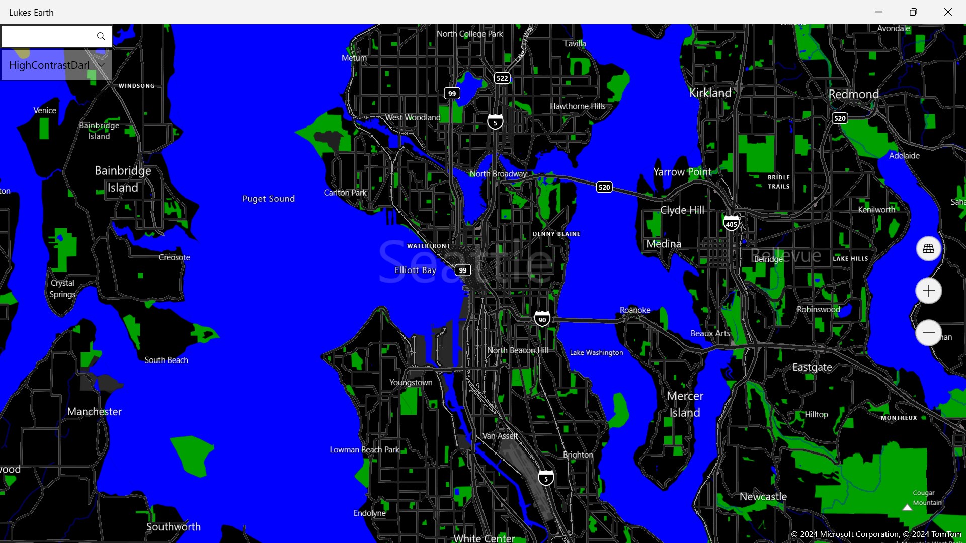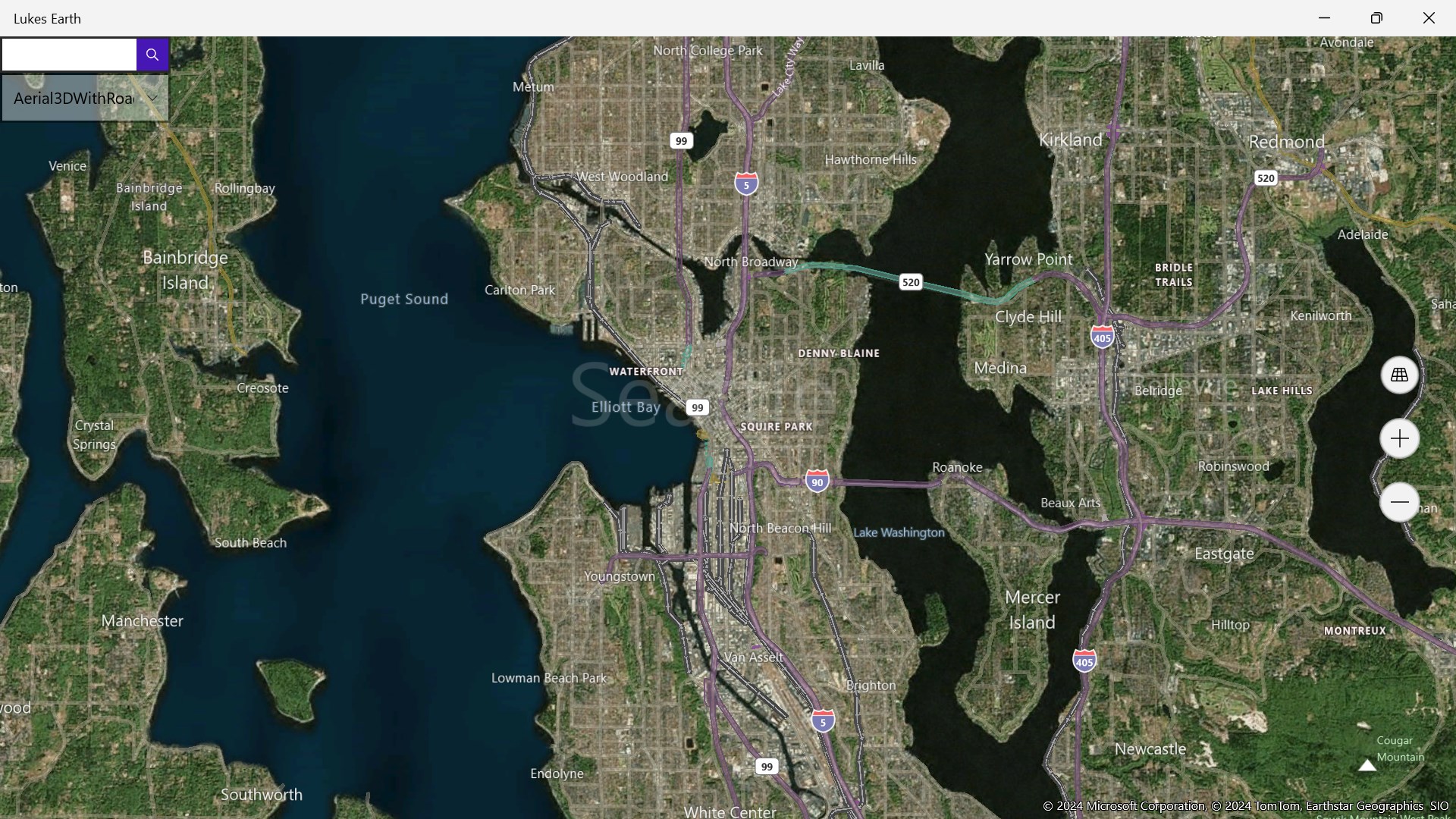 Lukes Earth is a computer program that renders a 3D representation of Earth based primarily on satellite imagery. The program maps the Earth by superimposing satellite images, aerial photography data from mapcontrol onto a 3D globe, allowing users to see cities and landscapes from various angles it has a search bar search anywhere on the world it has different styles like Aerial, Aerial 3D, Aerial3DwithRoads, None, Road, Terrain, RoadDark, RoadLight, HighContrastDark HighContrastLight.