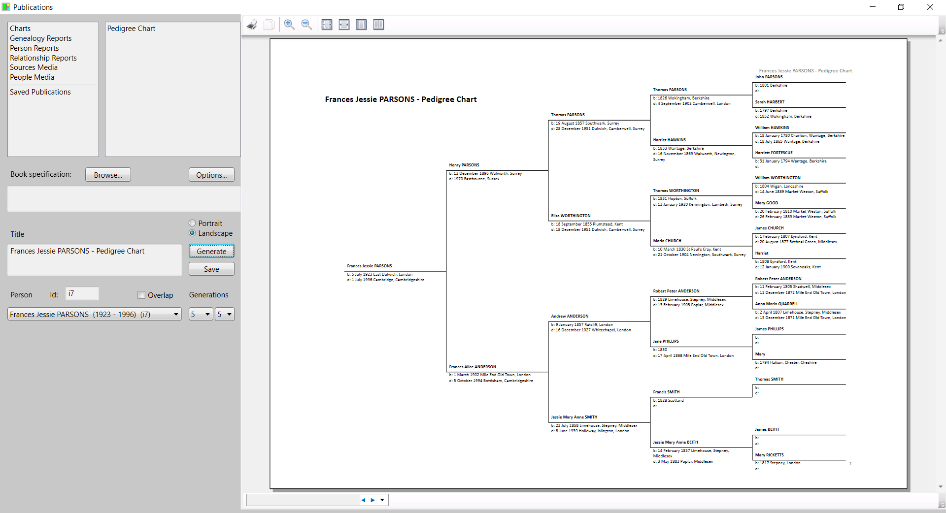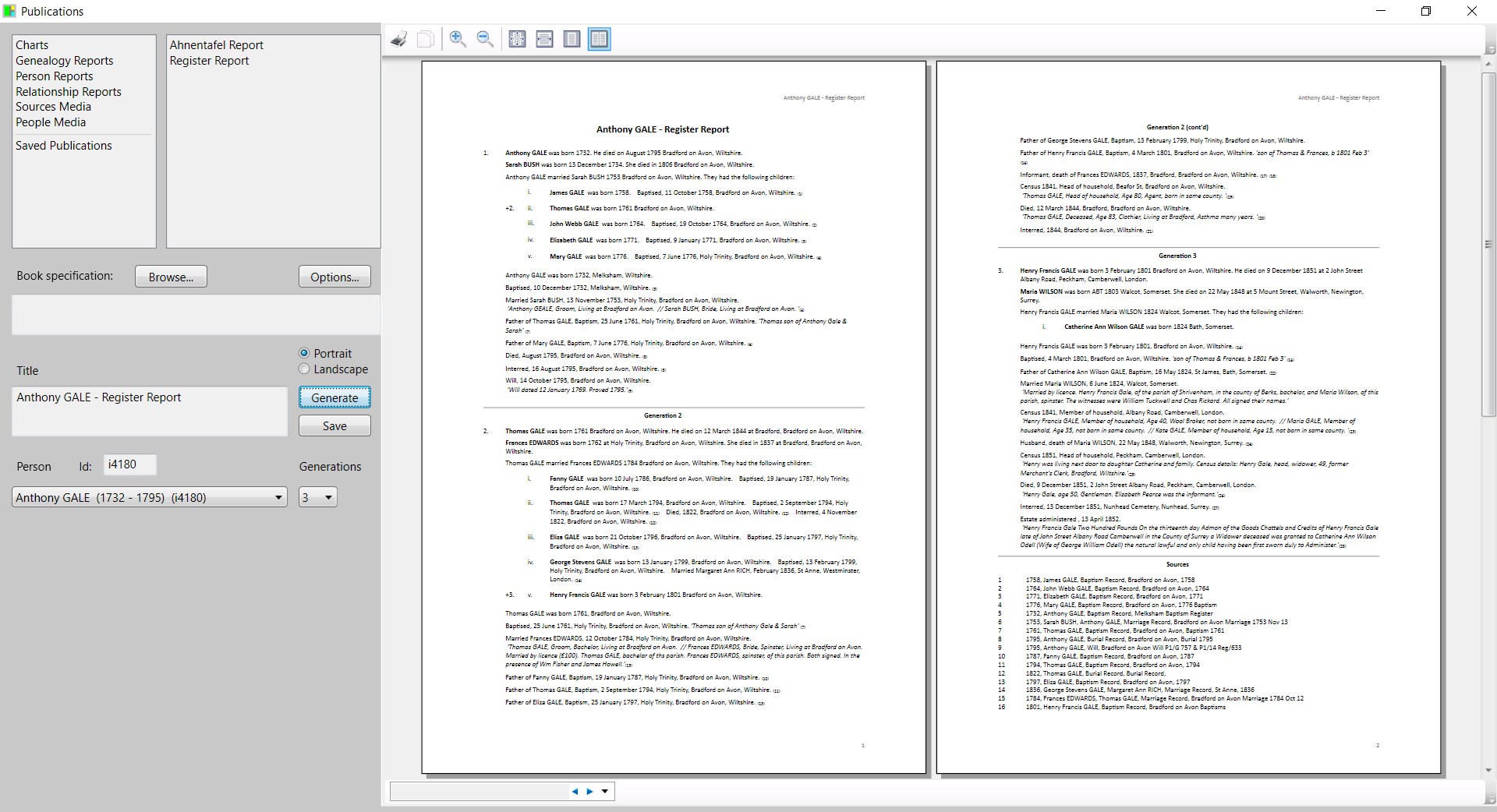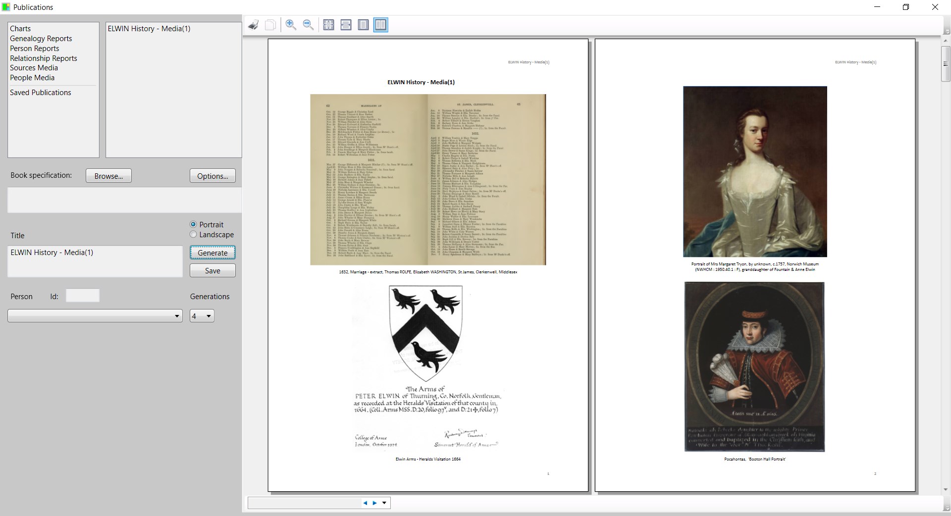 Publish family trees, and genealogy reports. Compile your family history in book form, to share with your family.
