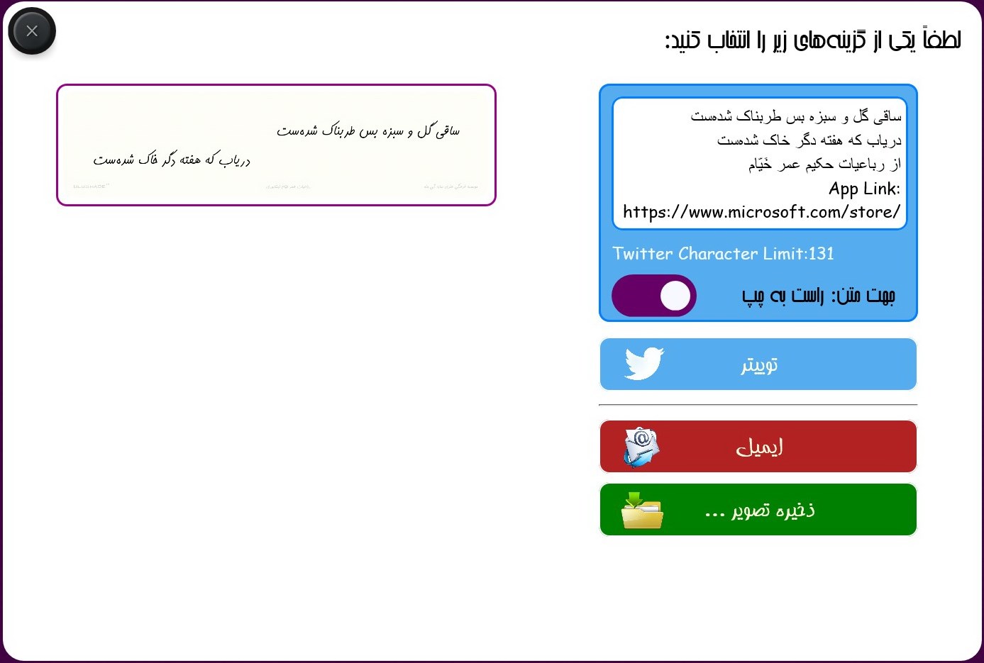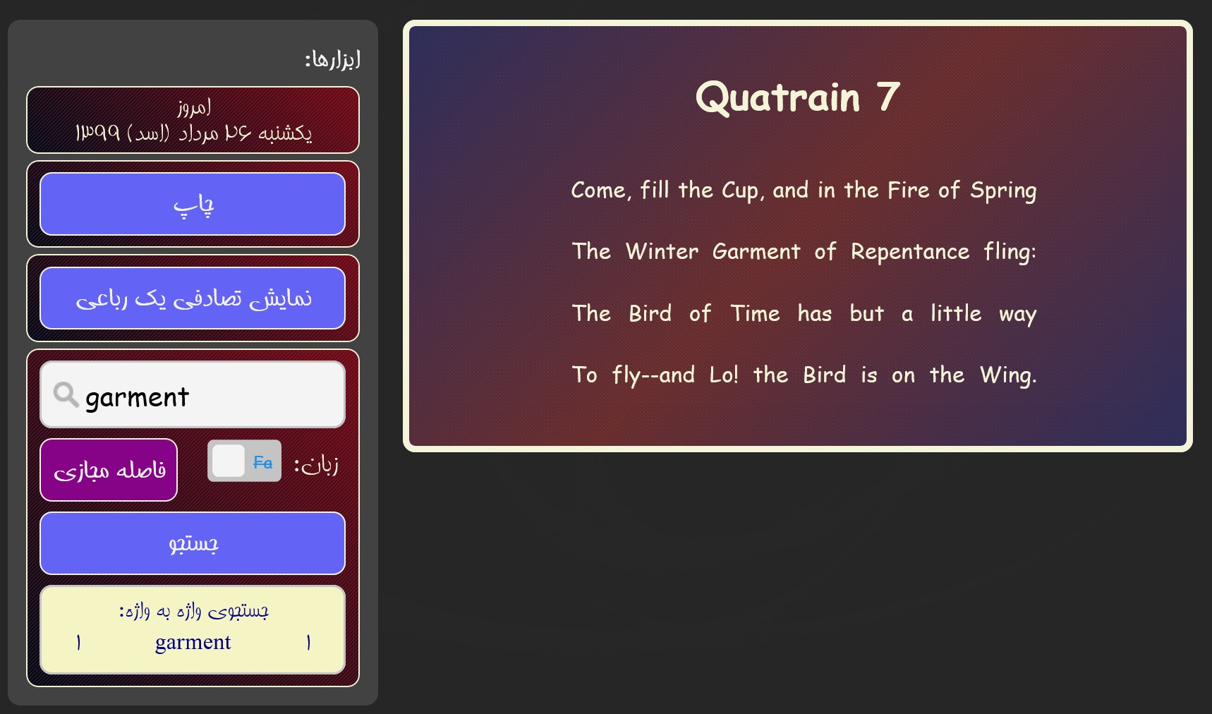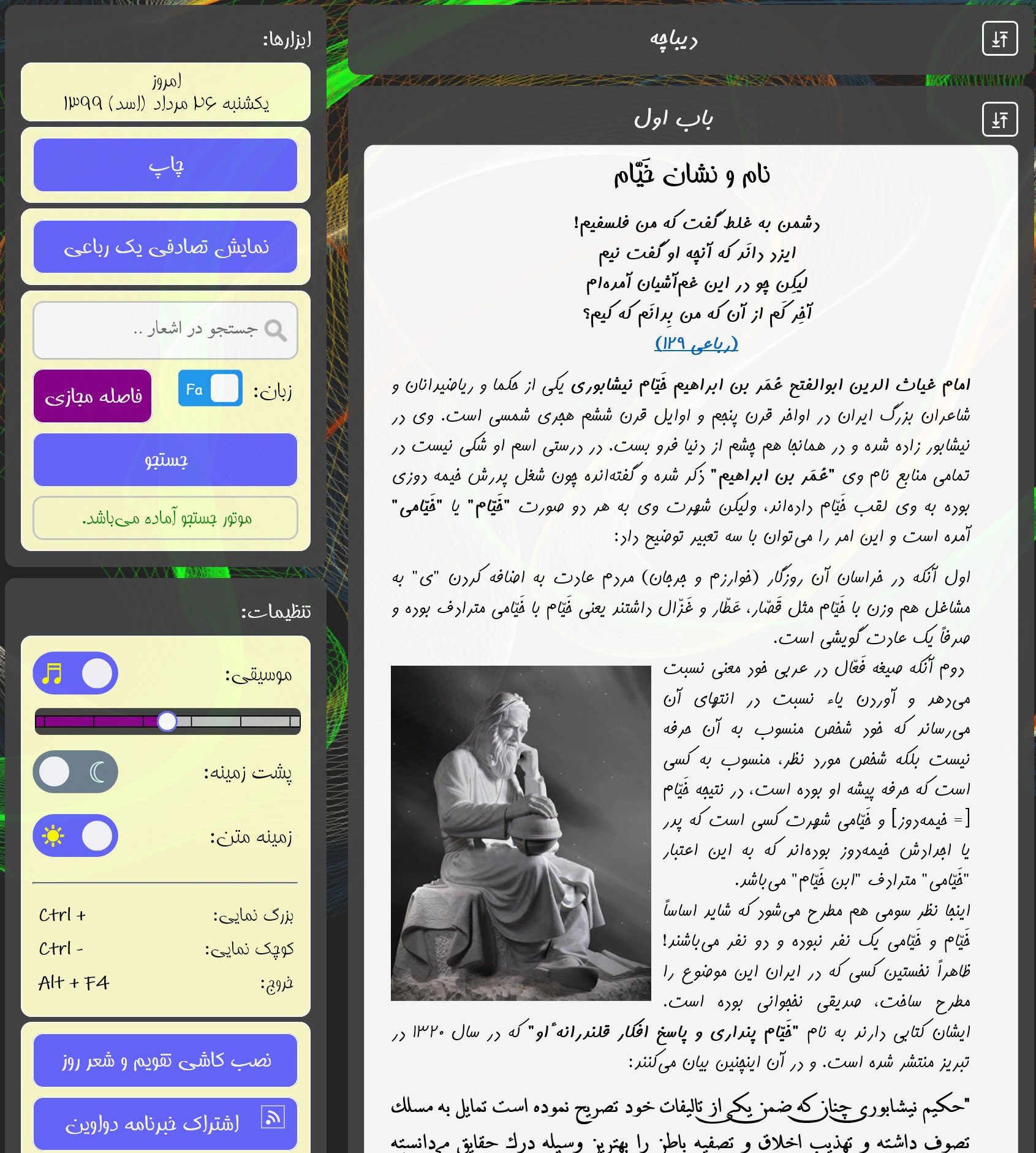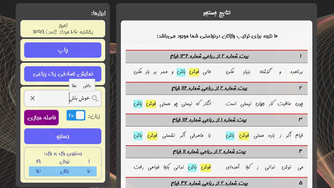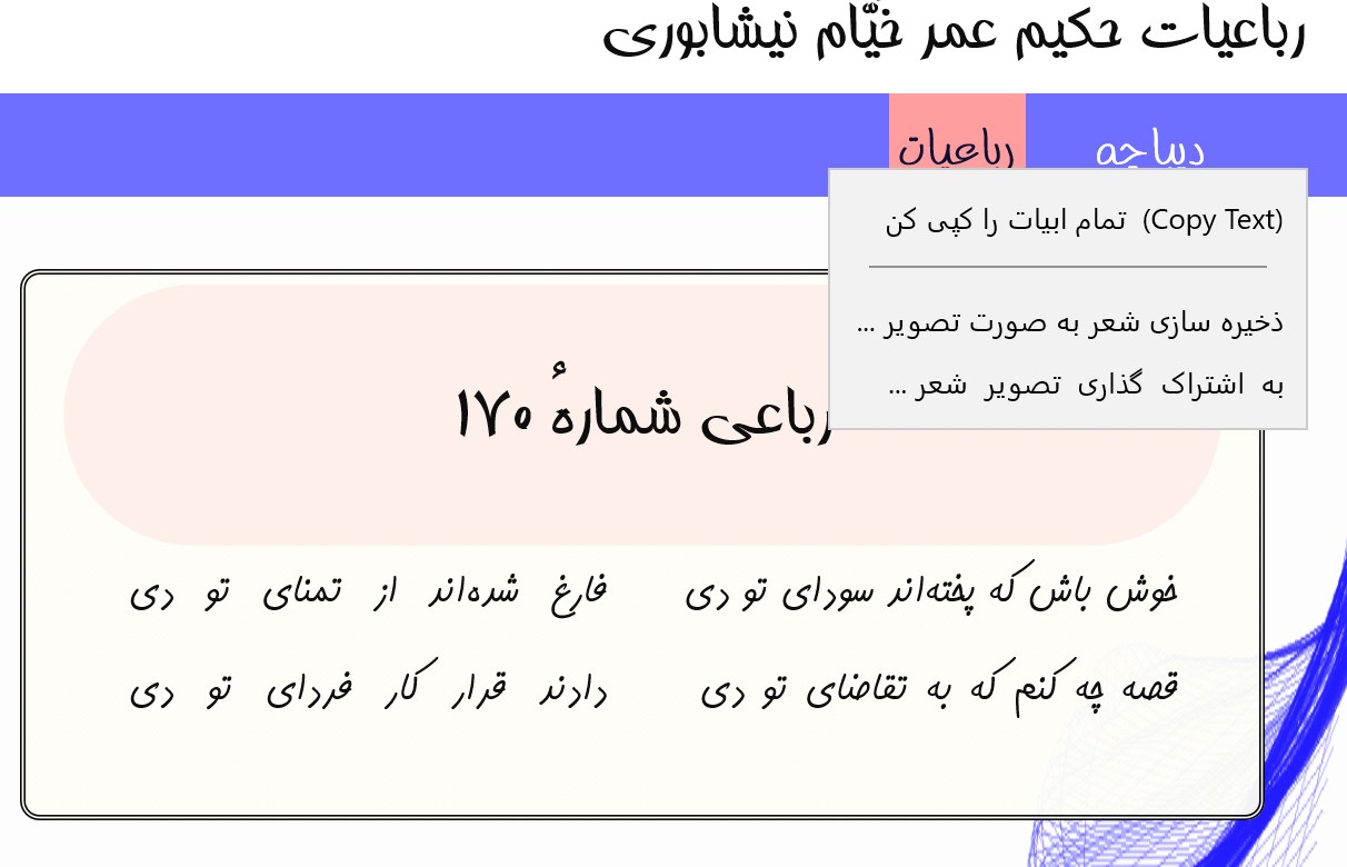 Step 4: Use رباعیات عمر خیام نیشابوری (Rubaiyat of Omar Khayyam)