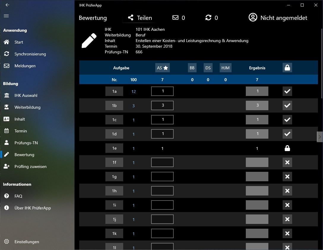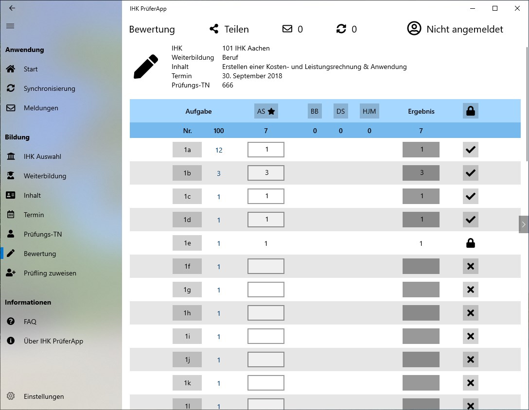 Mit der IHK PrüferApp erhalten Sie als IHK-Prüfer die Möglichkeit, Ihre Bewertungen von Prüfungsleistungen der Teilnehmer digital einzugeben. Nach dem Einloggen mittels der von Ihrer Industrie- und Handelskammer bereitgestellten Zugangskennung werden die benötigten Informationen zu den Ihrem Prüfungsausschuss zugewiesenen Teilnehmern auf Ihr Gerät geladen. Sie erhalten Zugriff auf digitale Bewertungsbögen, in die Sie Ihre Bewertungen eingeben können. Ihre Bewertungen können Sie ortsunabhängig vornehmen, da während der Eingabe der Bewertungen keine Internetverbindung erforderlich ist. Sobald Sie wieder mit dem Internet verbunden sind, werden die eingegebenen Daten übertragen. Arbeiten Sie mit Ihren Kollegen des Prüfungsausschusses zusammen. Wenn alle Prüfer Ihre Einzelbewertungen durchgeführt haben, kann über die IHK PrüferApp komfortabel die endgültige Bewertung durchgeführt werden und an die IHK übermittelt werden.