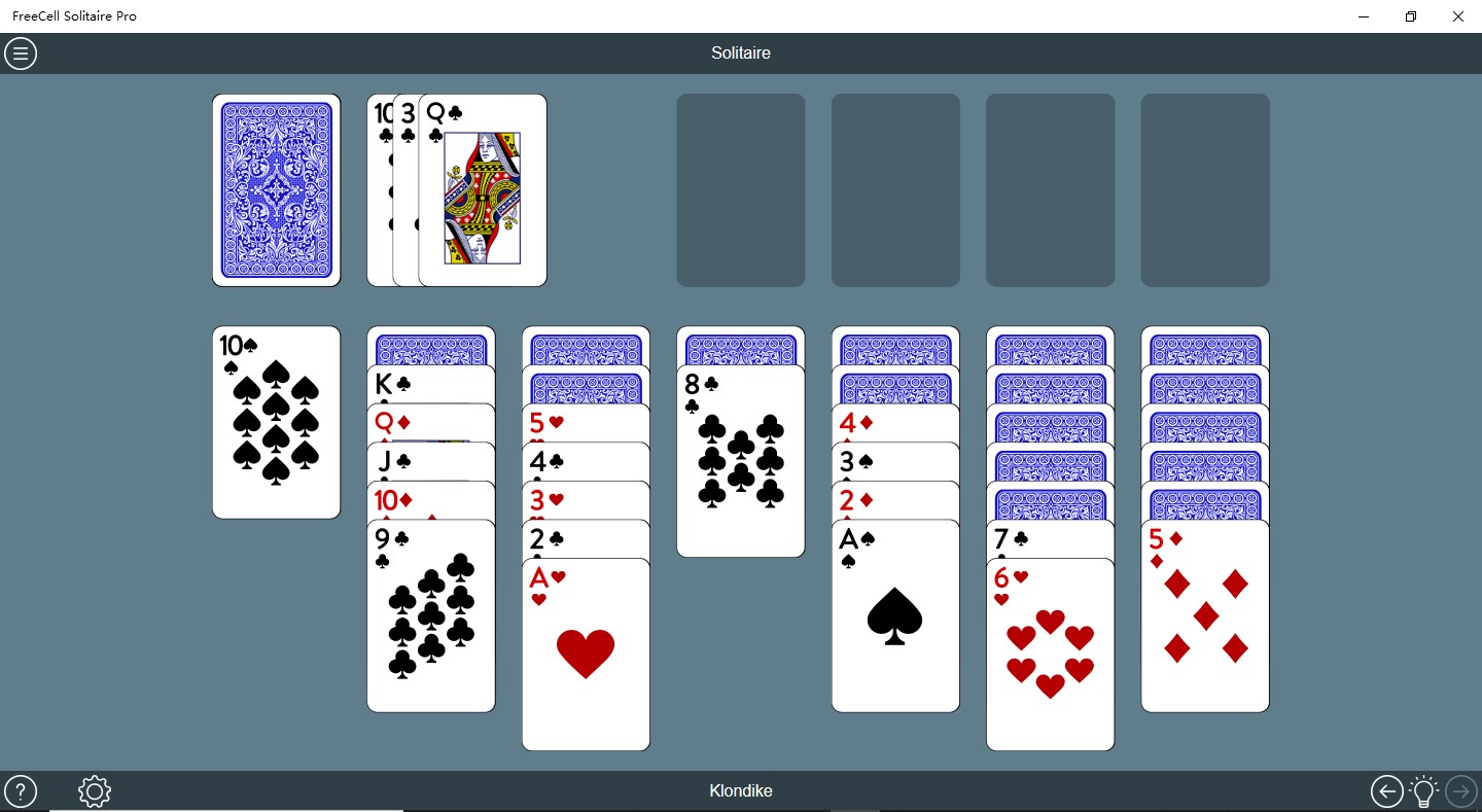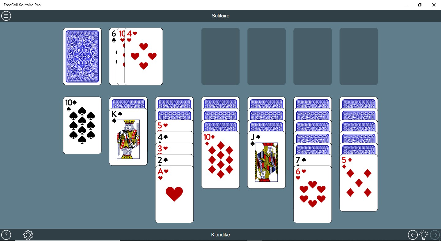 FreeCell Solitaire Card Game Pro is played with a standard deck of 52 cards. The goal of FreeCell Solitair Pro game is to move all cards to the four Foundation piles and build each suit up from Ace to King. After dealing cards, use the four free open cell spots to store cards as you are trying to win. Just like Klondike solitaire games, FreeCell Pro, require skill and strategy, is a true brain training experience!
