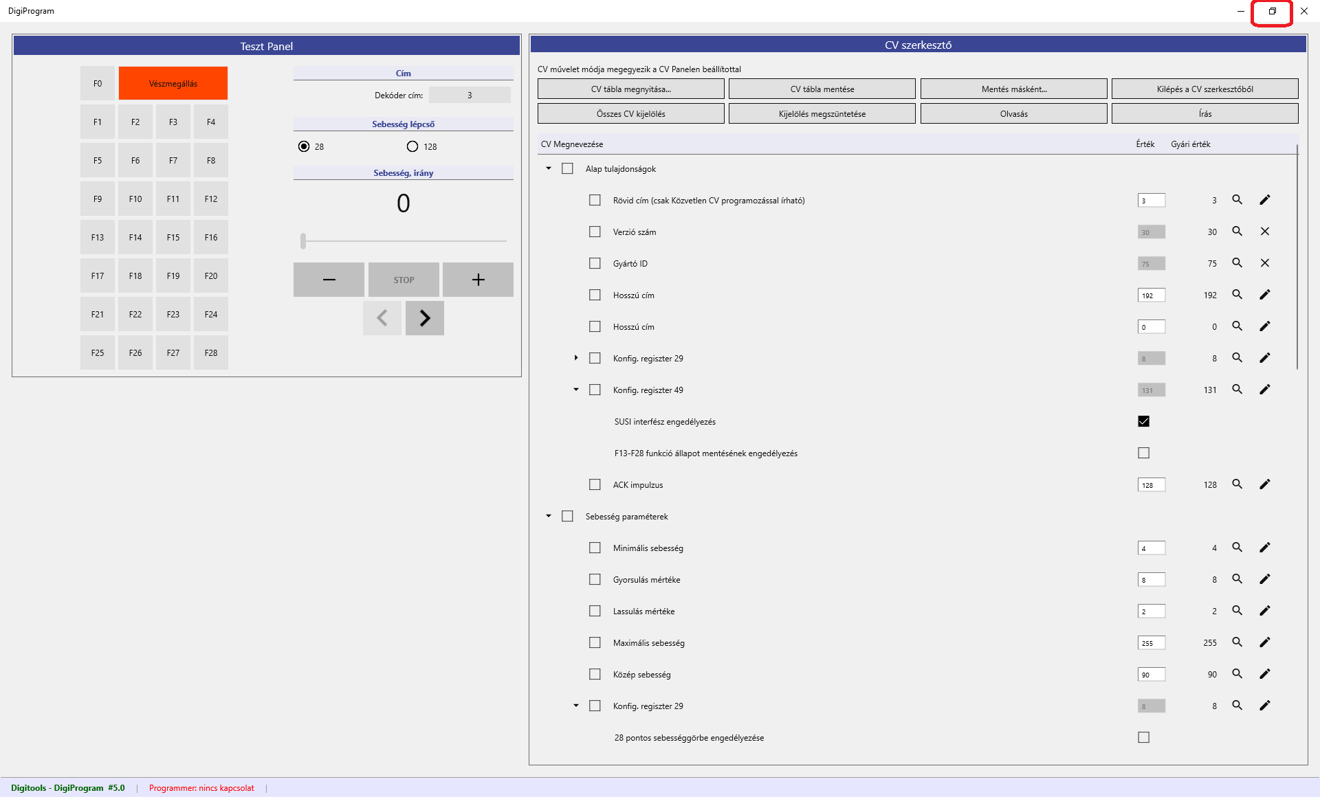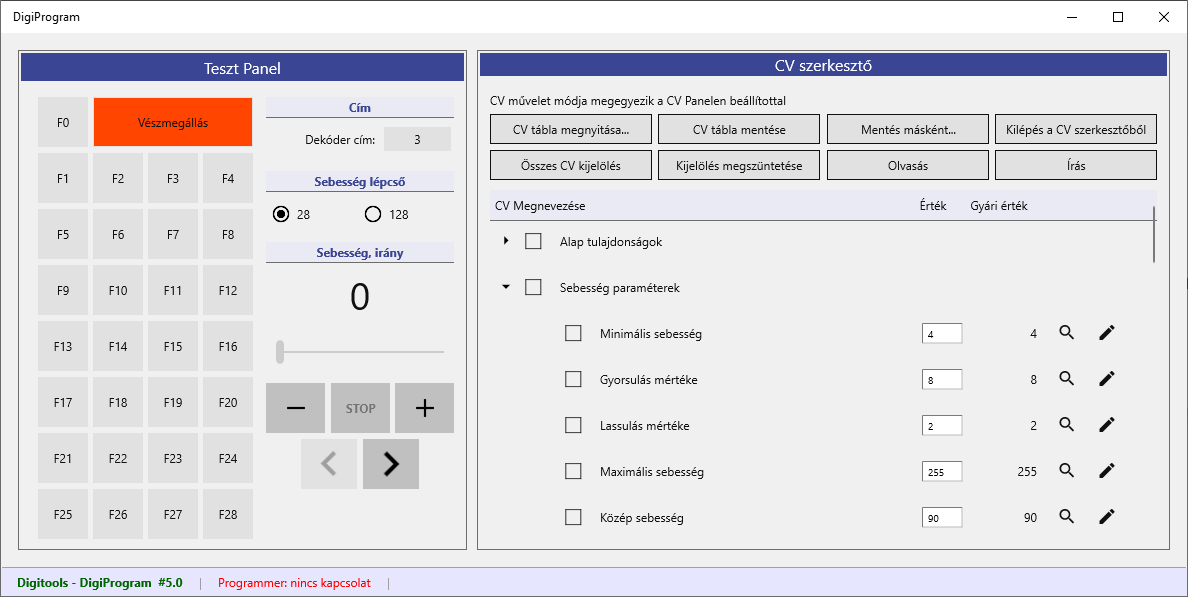 DigiProgram is a tool to test and program model railroad decoders made by DigiTools. To use this program DigiProgrammer hardware is also required connected via USB to your PC.