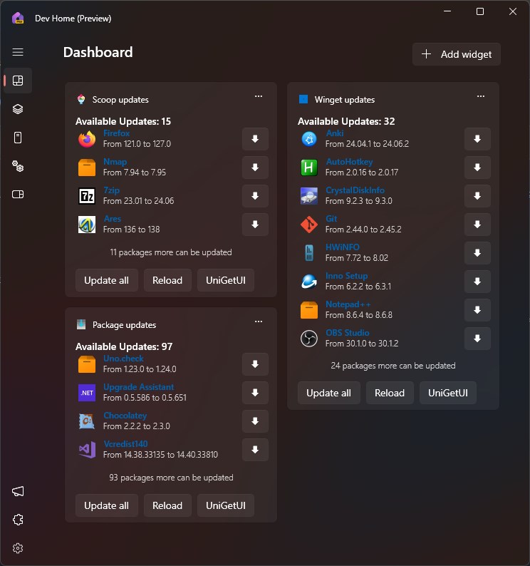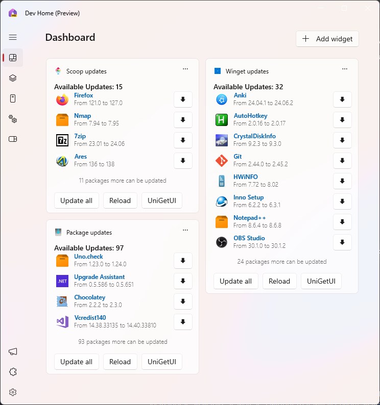 Widgets for the Windows Widgets and Dev Home applications that will help you quickly manage your software updates without having to launch UniGetUI.