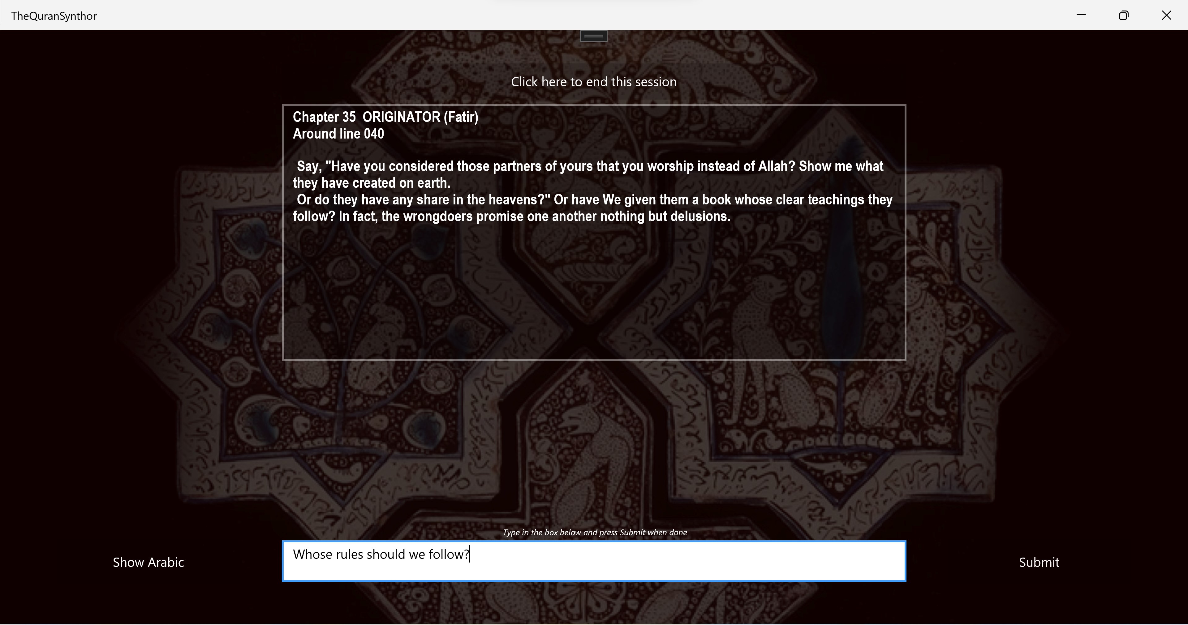 Step 4: Use The Quran Synthor