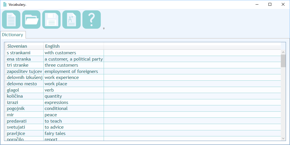 Vocabulary++ word lists are saved in XML format (with extension *.vocab), and allows for maximal potential compatitibility with other apps.