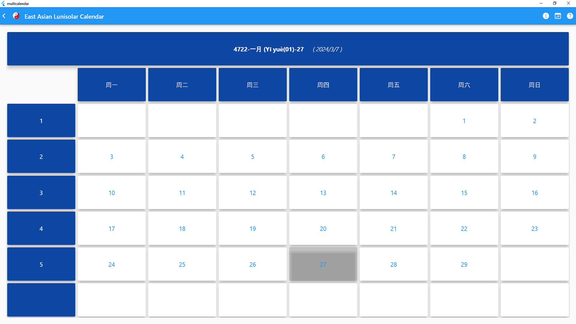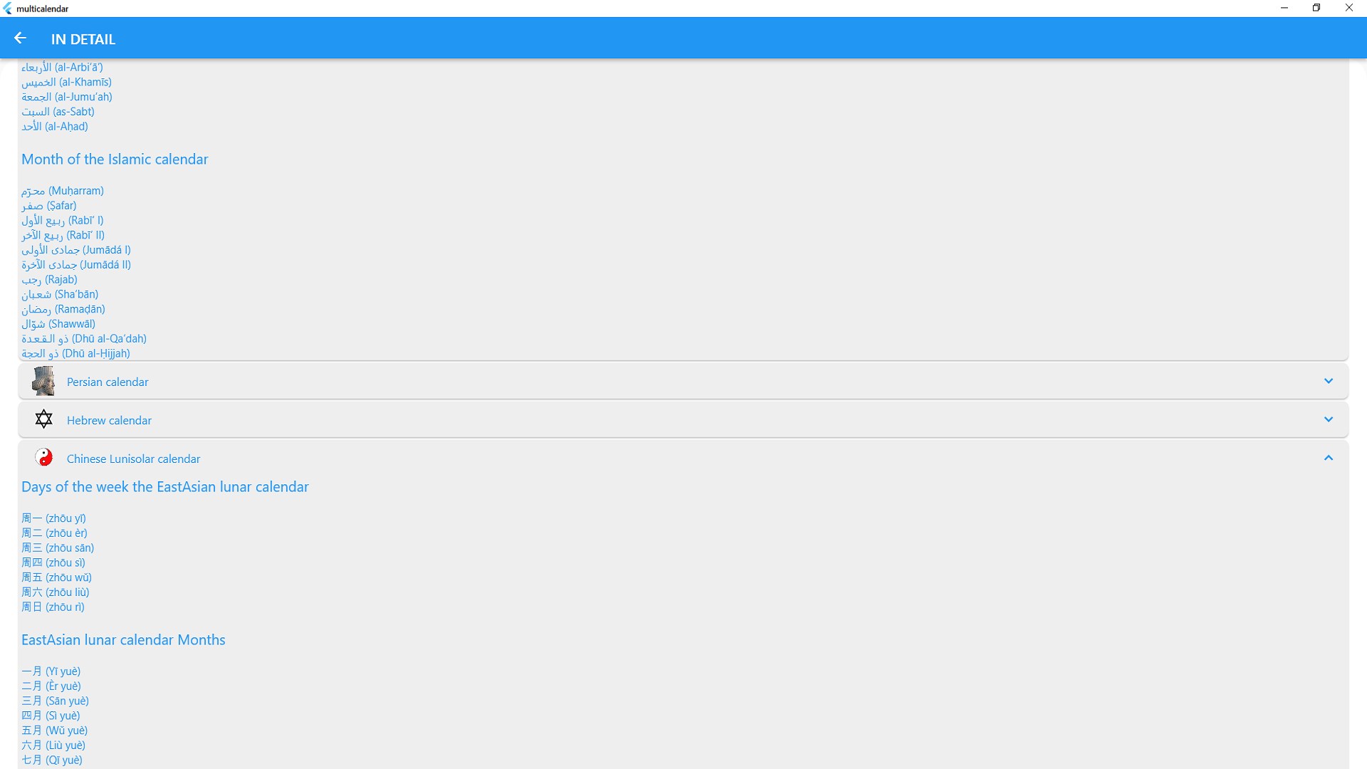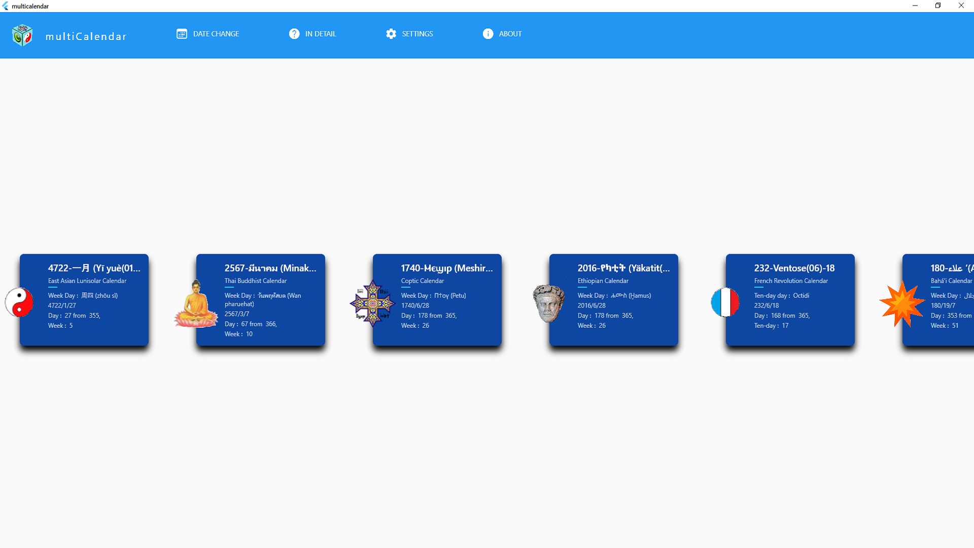 multiCalendar combines in a single application acting and "not very acting" calendars of various nations, religions and cultures on your device.
