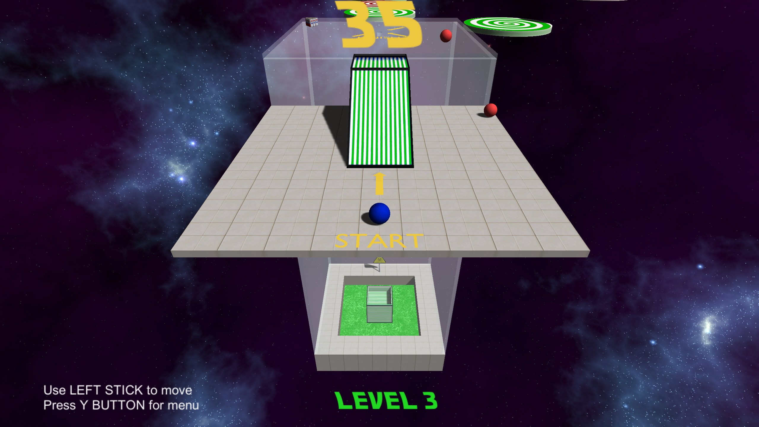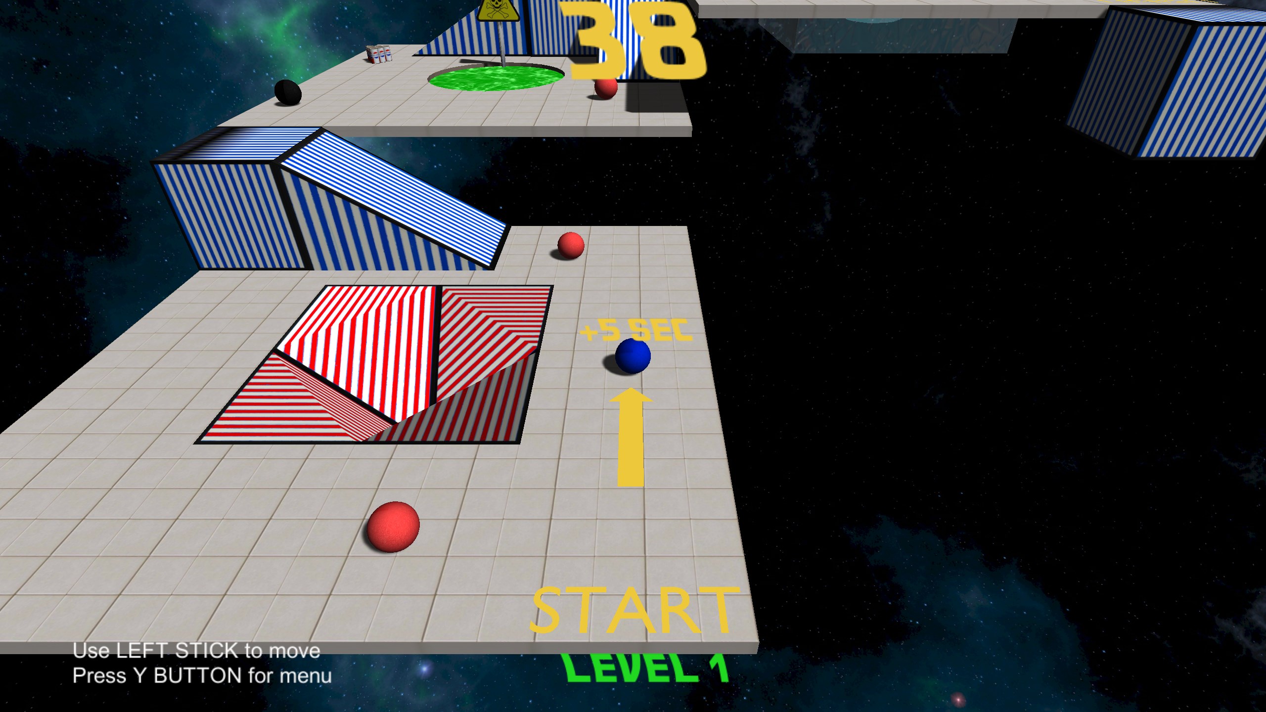 Roll your marble to the goal. Try to beat the clock. Avoid traps and enemies. Gain bonus time along the way or lose it by penalties. Try for the record time. Six challenging levels designed to test your skill. Can you beat them all?