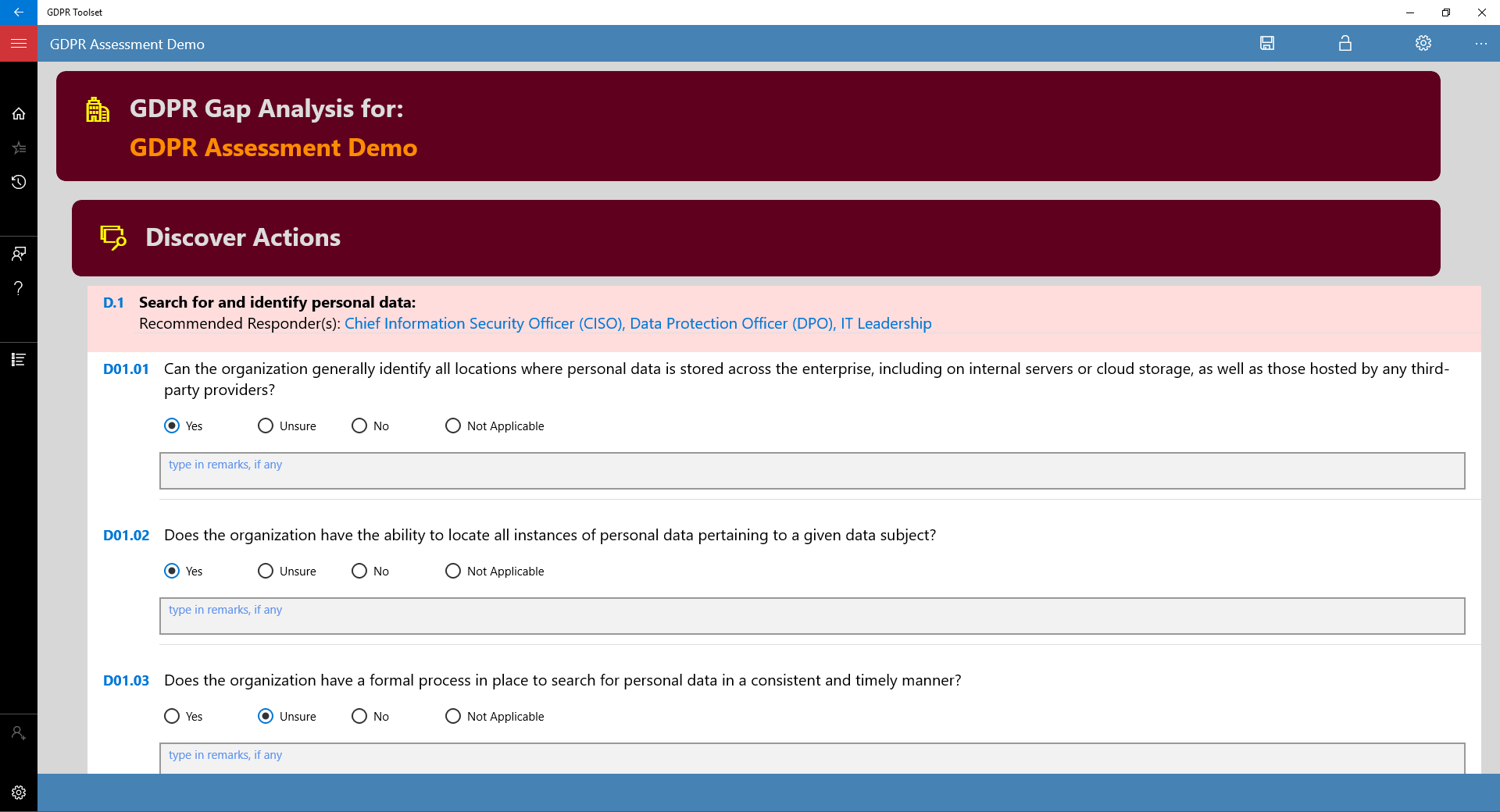 It means this toolset comprises of two distinct GDPR assessment methodologies based on (1) Microsoft DMPR, and (2) ICO Data Protection Checklist.