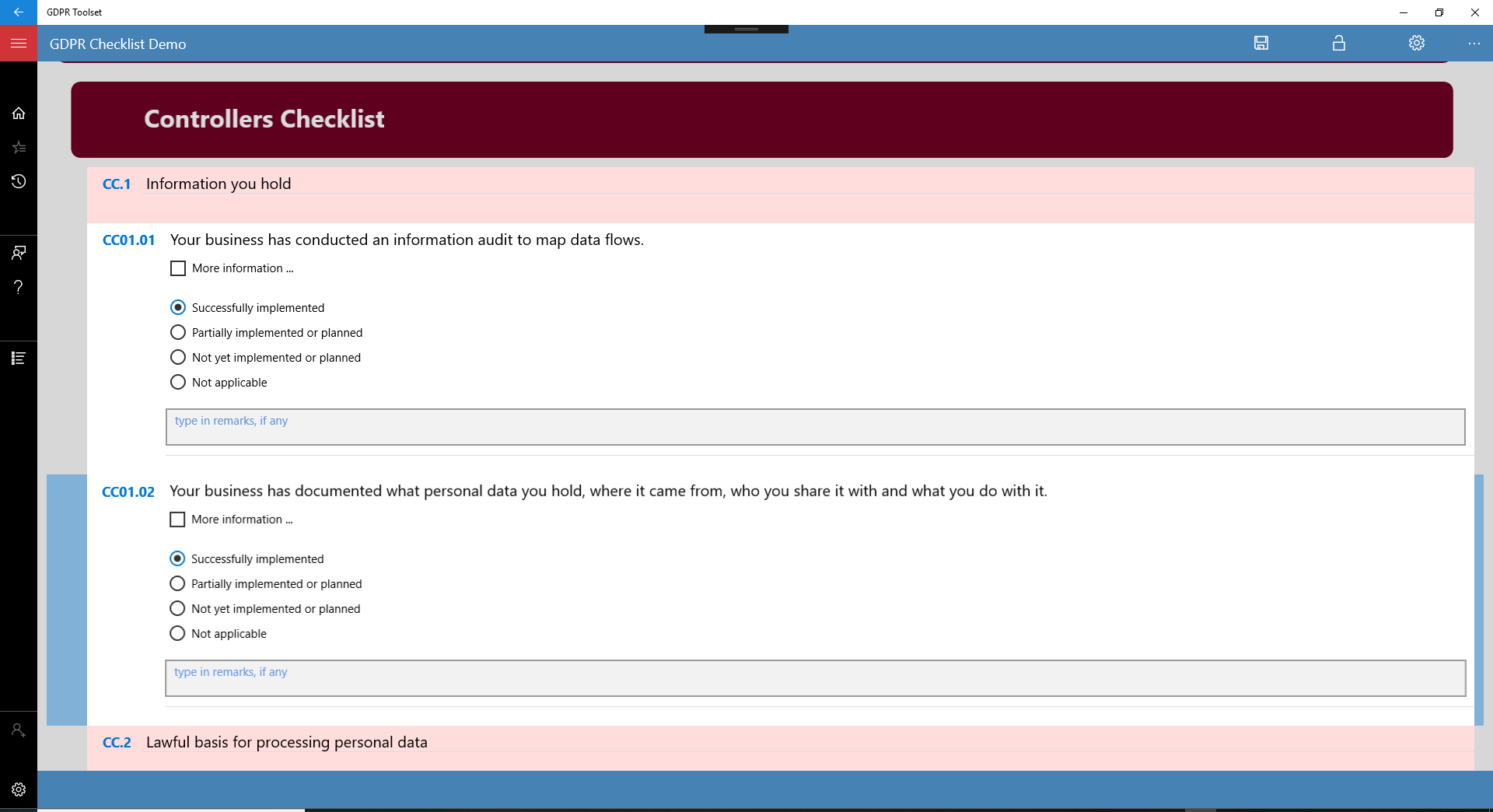 Version 19.4.200 (2019-04-11) - The ICO GDPR checklist methodology is implemented and included as an additional assessment tool.