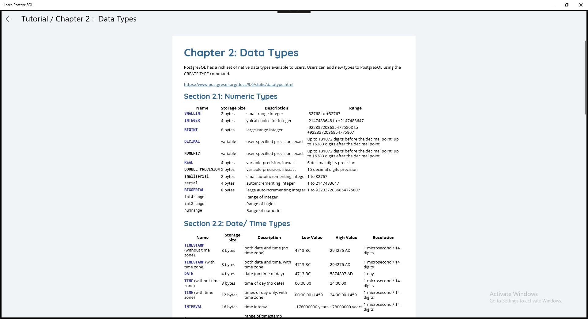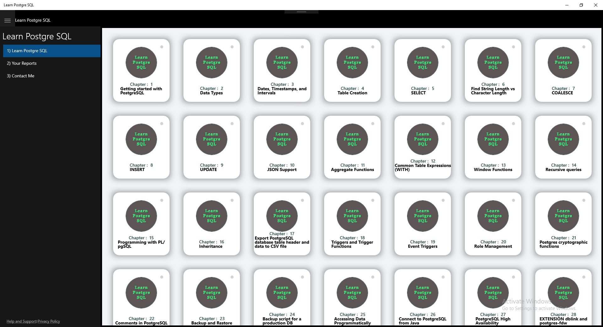 This app contains tutorials and reports for the all who want to Learn PostgreSQL.