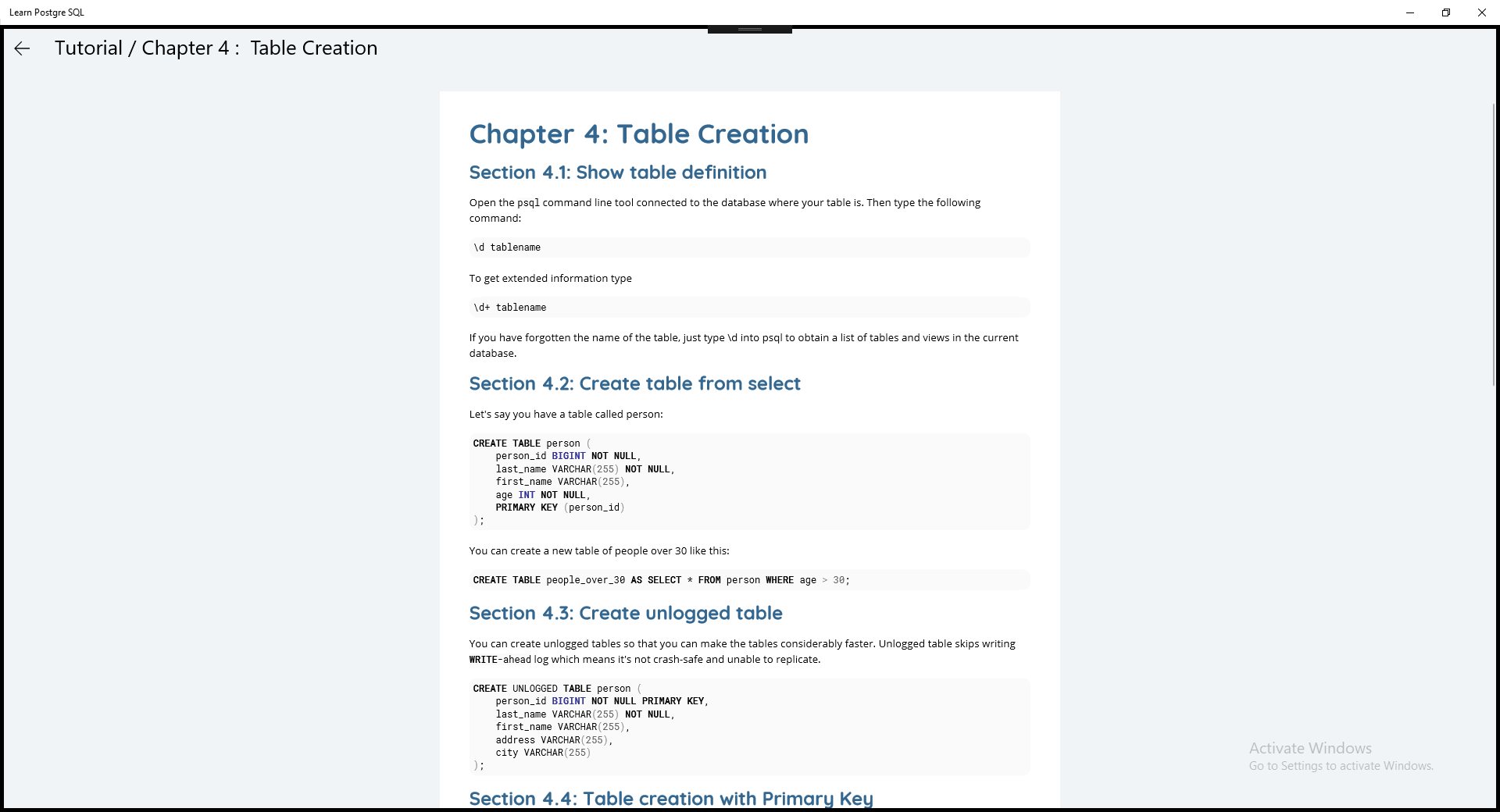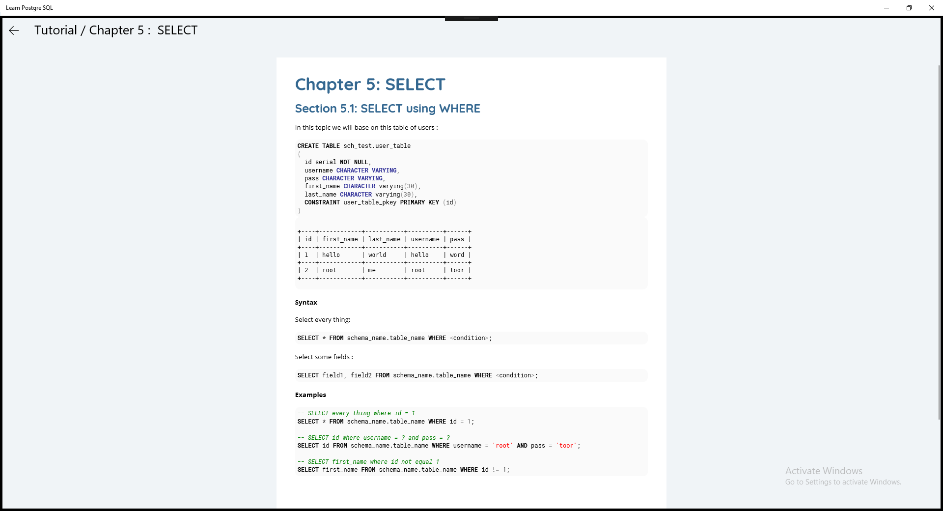 Step 4: Use Learn Postgre SQL