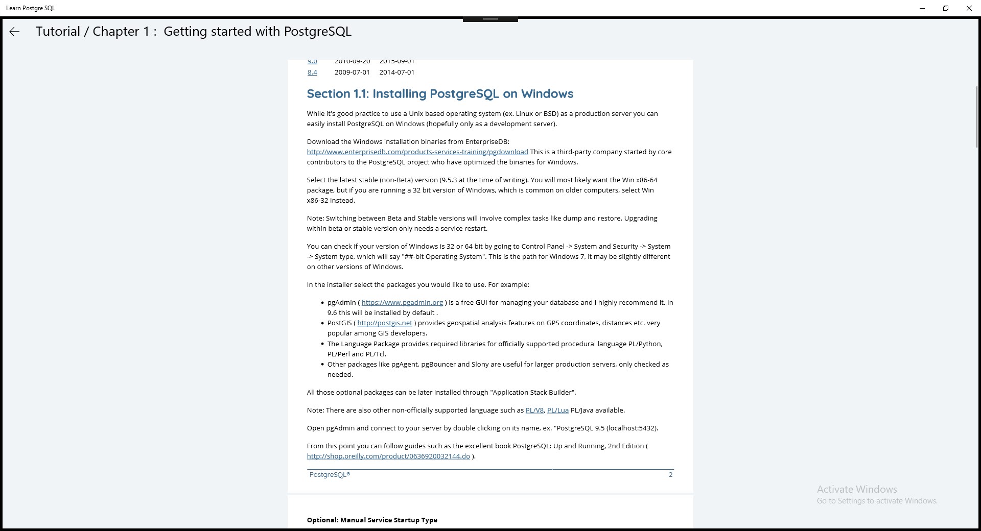 How to download and Install Learn Postgre SQL on Windows PC via the NWindows Store