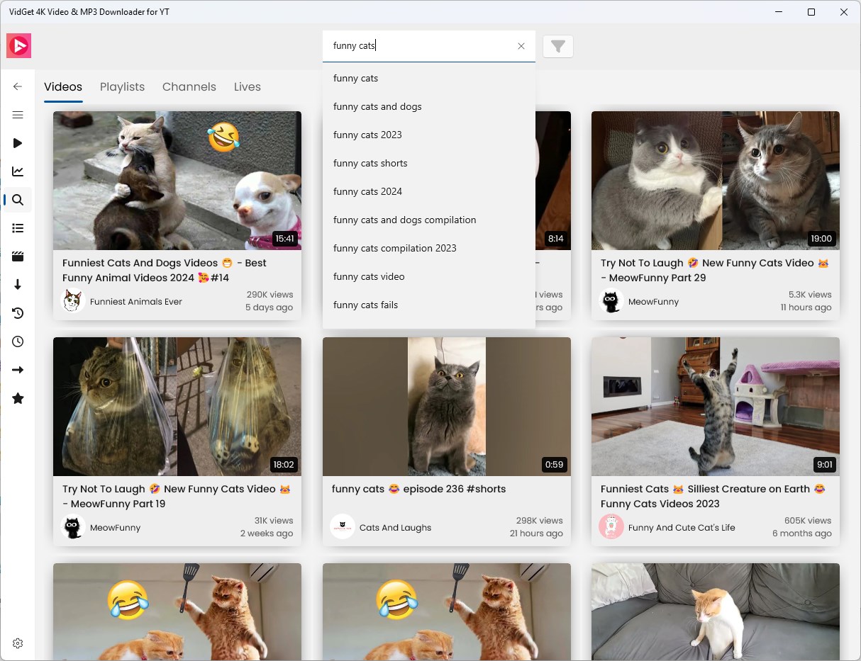 1. Unlimited Search Videos, Playlists, Channels, Lives results