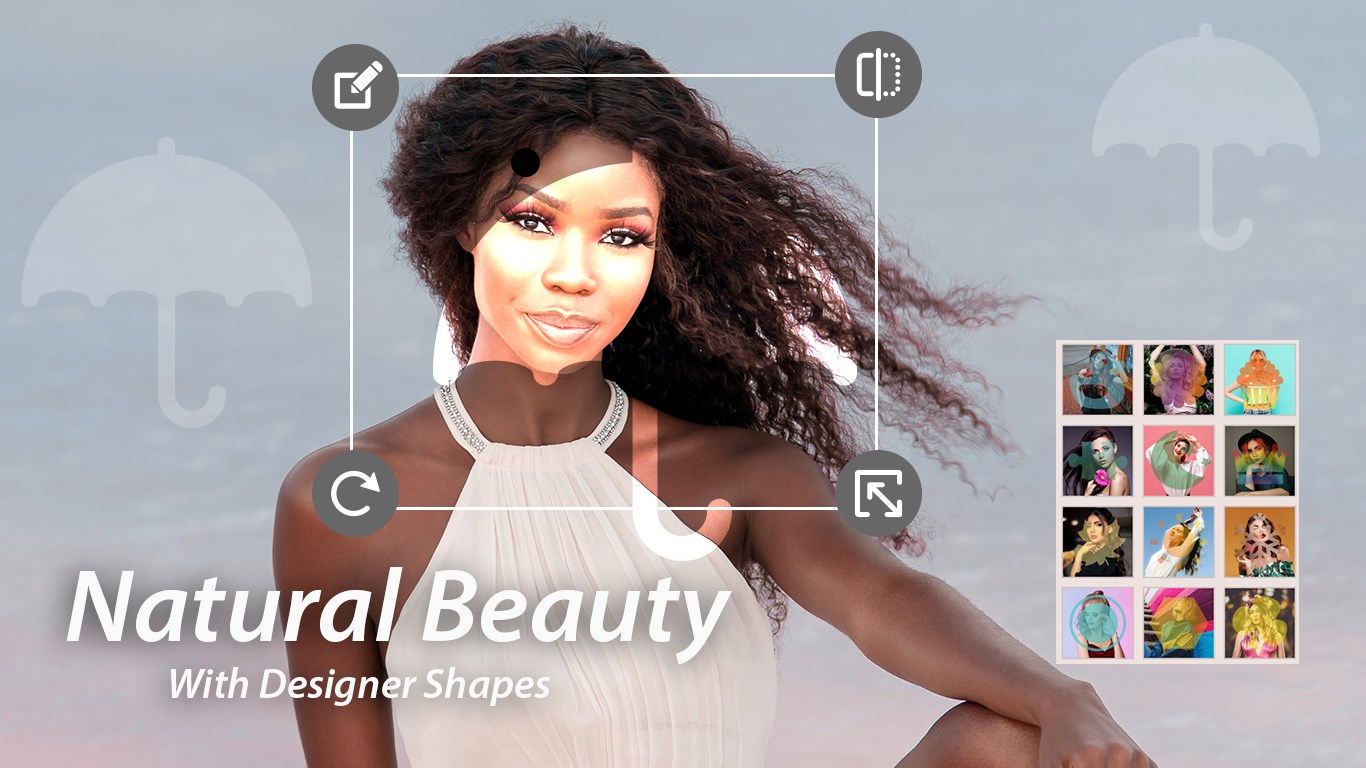 * Shapes can be revolved left/right, zoom in/out and filters on background image can be changed by selecting any from 45+ options of filter
