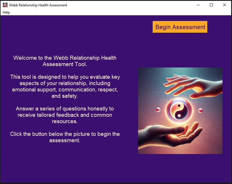 Discover the health of your relationship with the Webb Relationship Health Assessment Tool, a comprehensive and easy-to-use app designed to help individuals evaluate key aspects of their relationships. Whether you're looking to strengthen your bond or identify potential areas of improvement, this tool provides personalized feedback to help you build a stronger, healthier partnership.