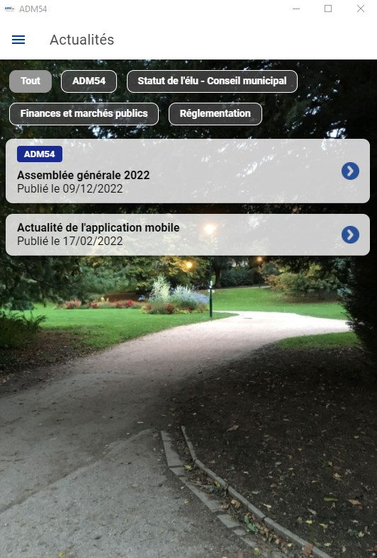 L'application de l'ADM 54 permet à ses adhérents de solliciter directement l'association pour une demande de conseil (finance, fiscalité ou juridique), bénéficier de la veille juridique et des communiqués périodiques, accéder à la plateforme documentaire ou encore s'inscrire aux formations et autres événements (congrès départemental et national). De nouvelles fonctionnalités sont ajoutées en continu.
