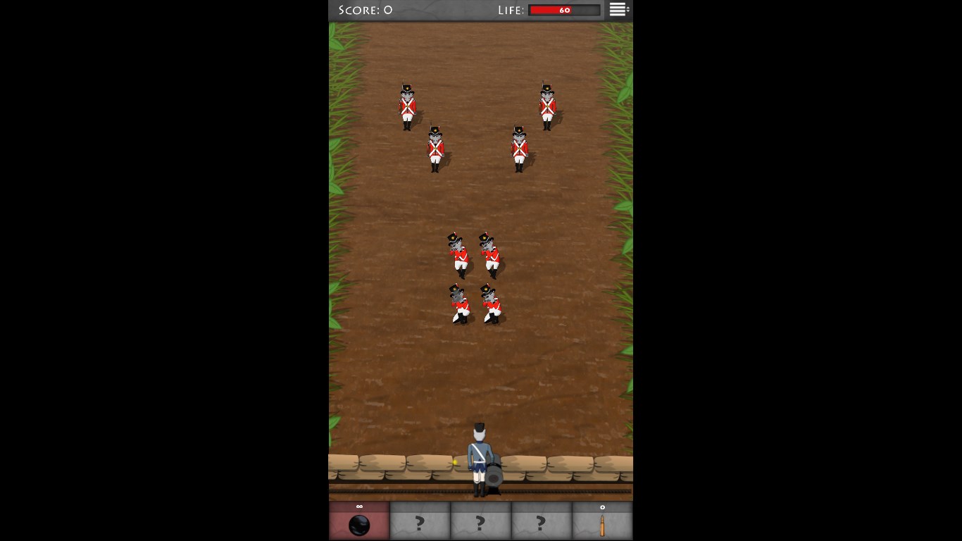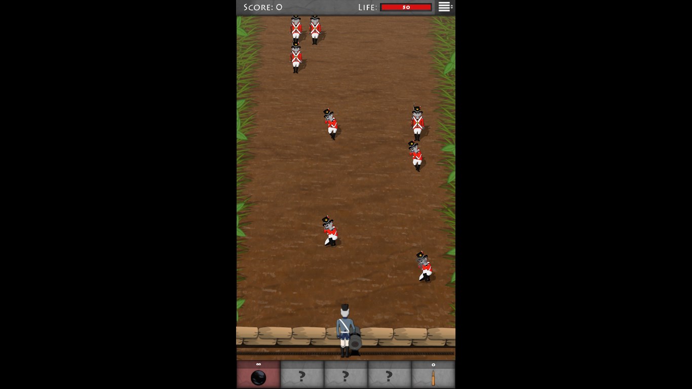 45 levels full of action4 kinds of enemies4 + 1 kinds of ammunition3 different battlefieldsSurvival mode with online rankingsChallenges (can you complete them all?) All this in a beautiful animated graphics inspired by the period of the Napoleonic Wars