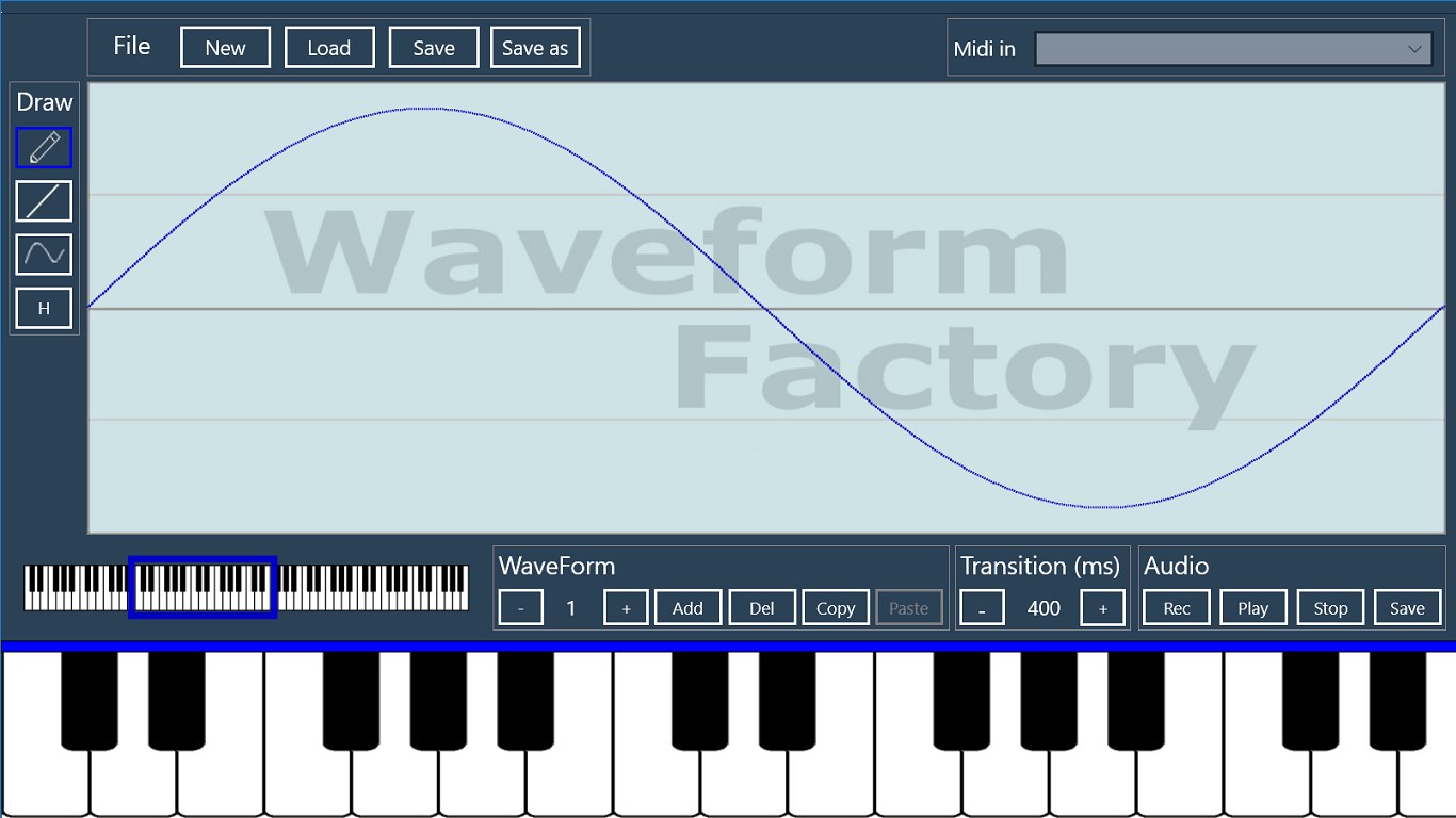 Create your own synth sounds and use these sounds with your midi keyboard. With Waveform Factory you can draw waveforms and listen to how they sound. You can also create a sound morphing from one waveform to another.