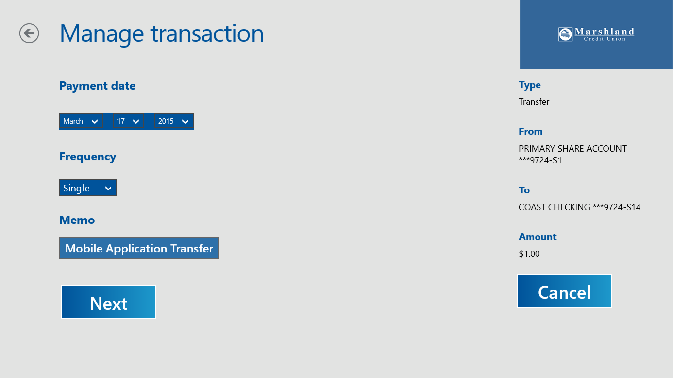 MARSHLAND CREDIT UNION MOBILE EXPRESS BANKING APP