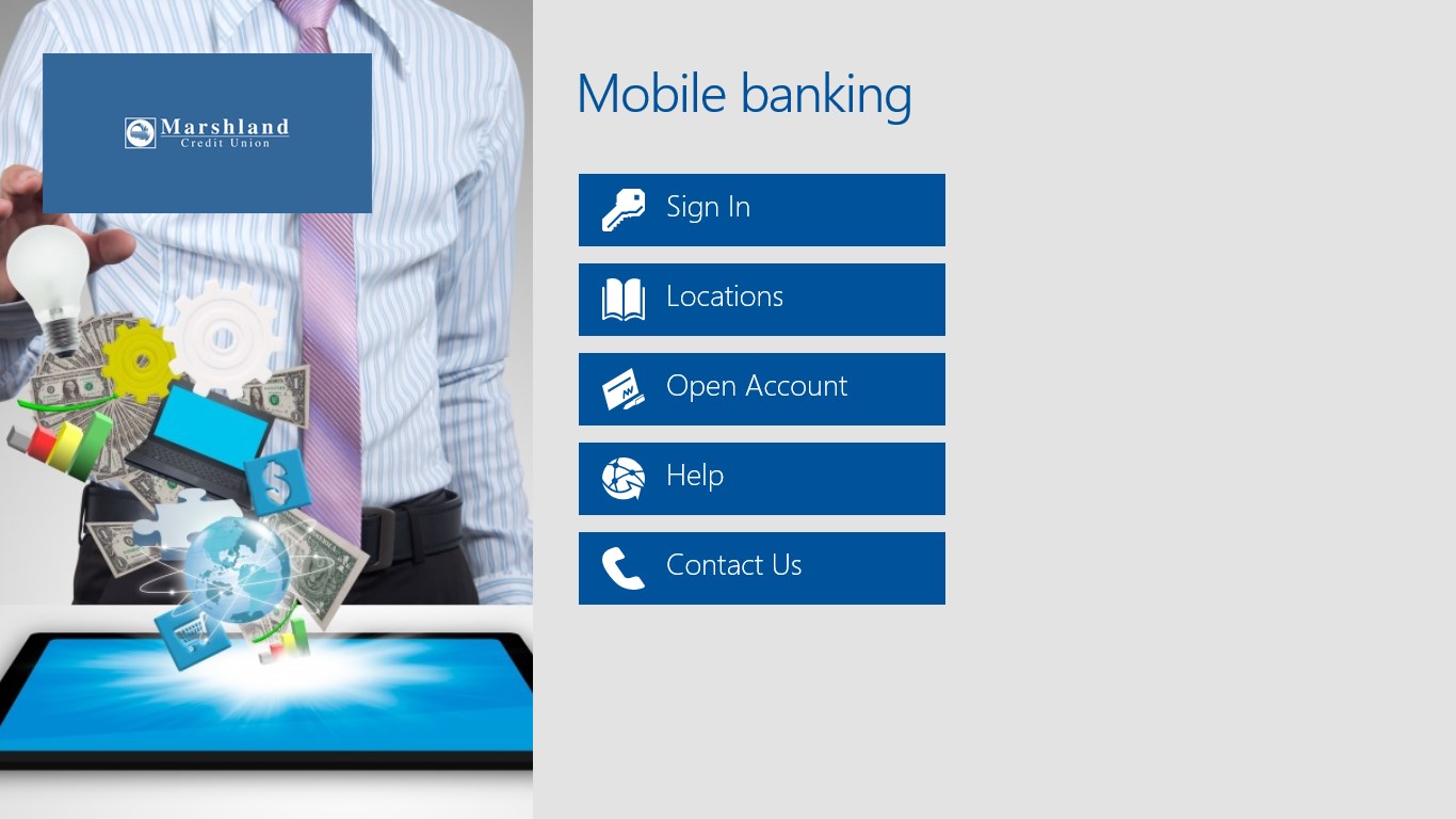 *To use the Marshland Credit Union Mobile Express Banking App, you must be a Marshland Internet Banking user. The Marshland Mobile Express App allows you to access your accounts using your existing Marshland Credit Union Internet Banking username and password. To register for Internet banking, please visit https://online.marshlandfcu.coop/servlet/SLogin?template=/c/login/sloginsc.vm