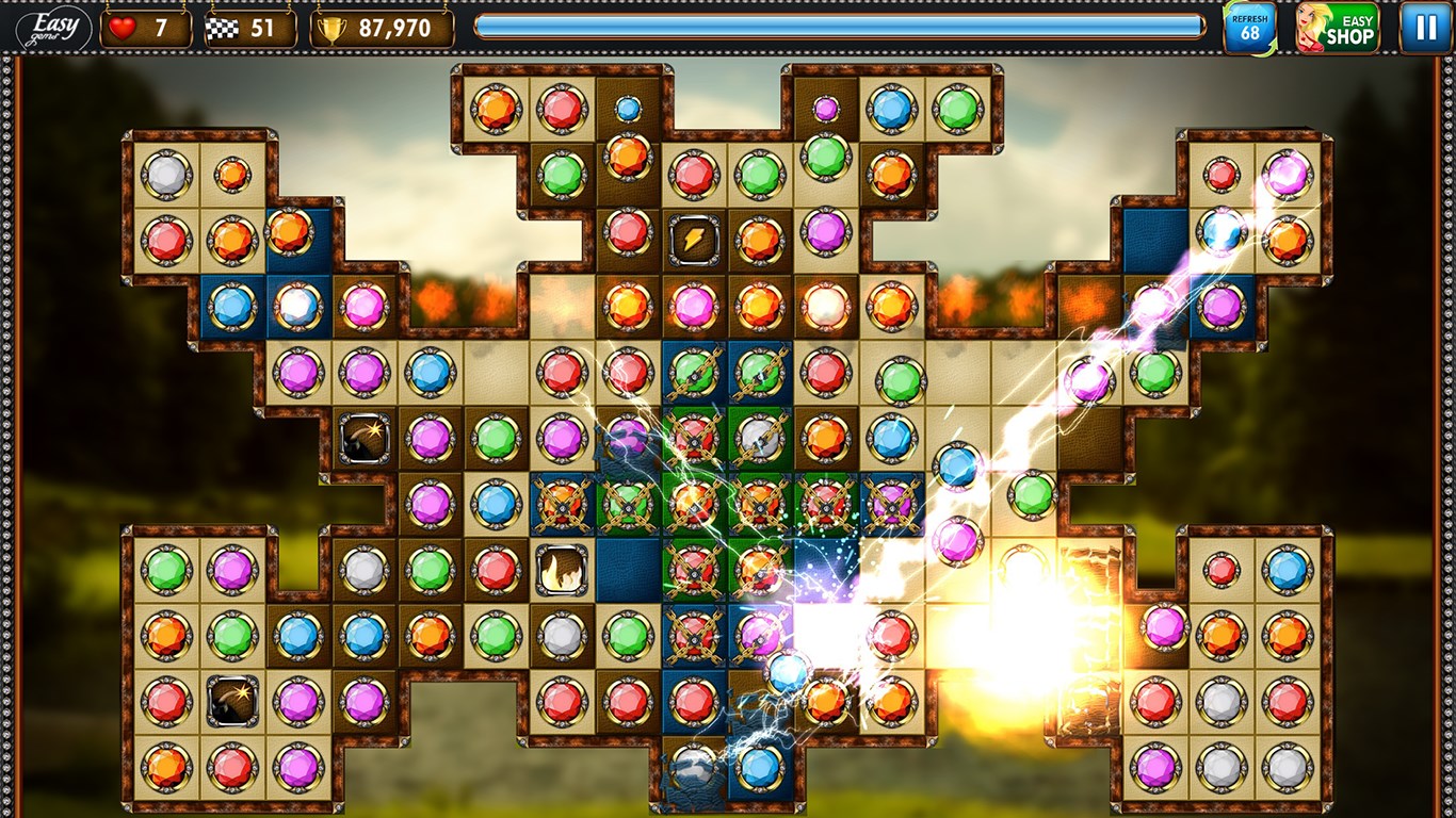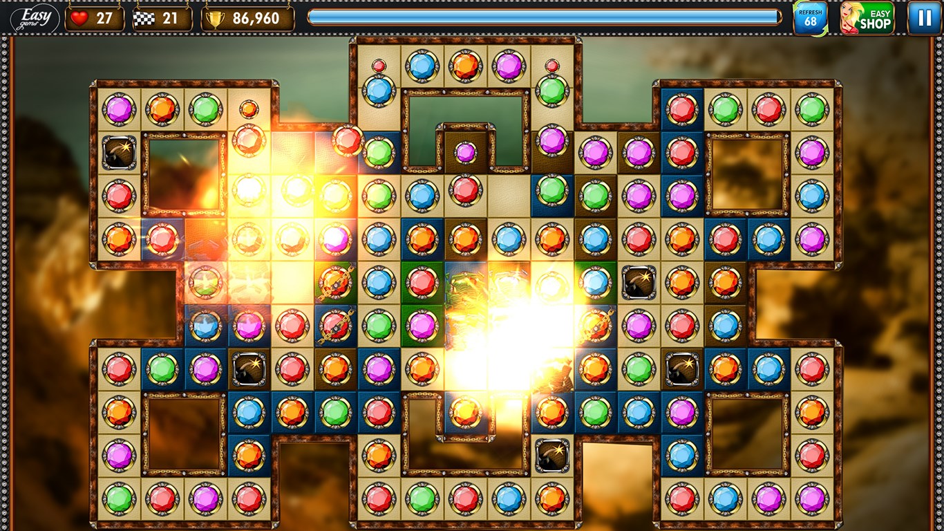 Discover Easy Gems - best jewel match three puzzle game. Enhanced gameplay, amazing power-ups and addictive game mechanics in match three puzzle game.
