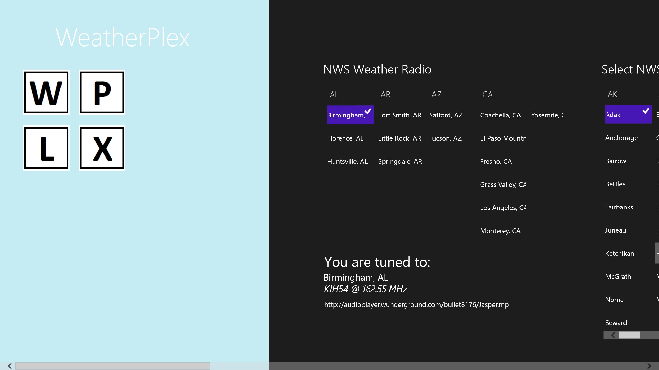 WPLX audio streams are from WeatherUnderground.