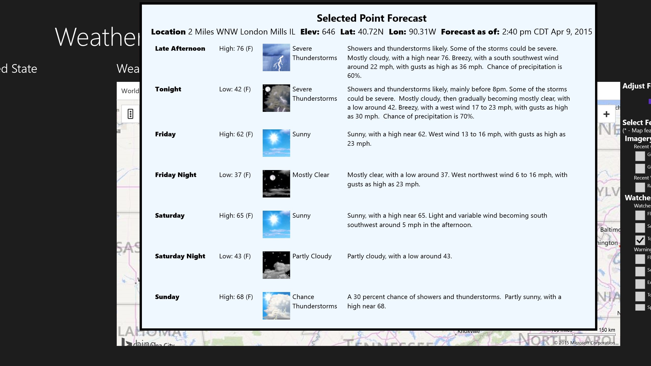 7. 'Point Forecasts' - right-click any location on the weather map for a detailed forecast.