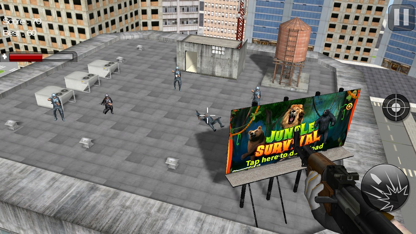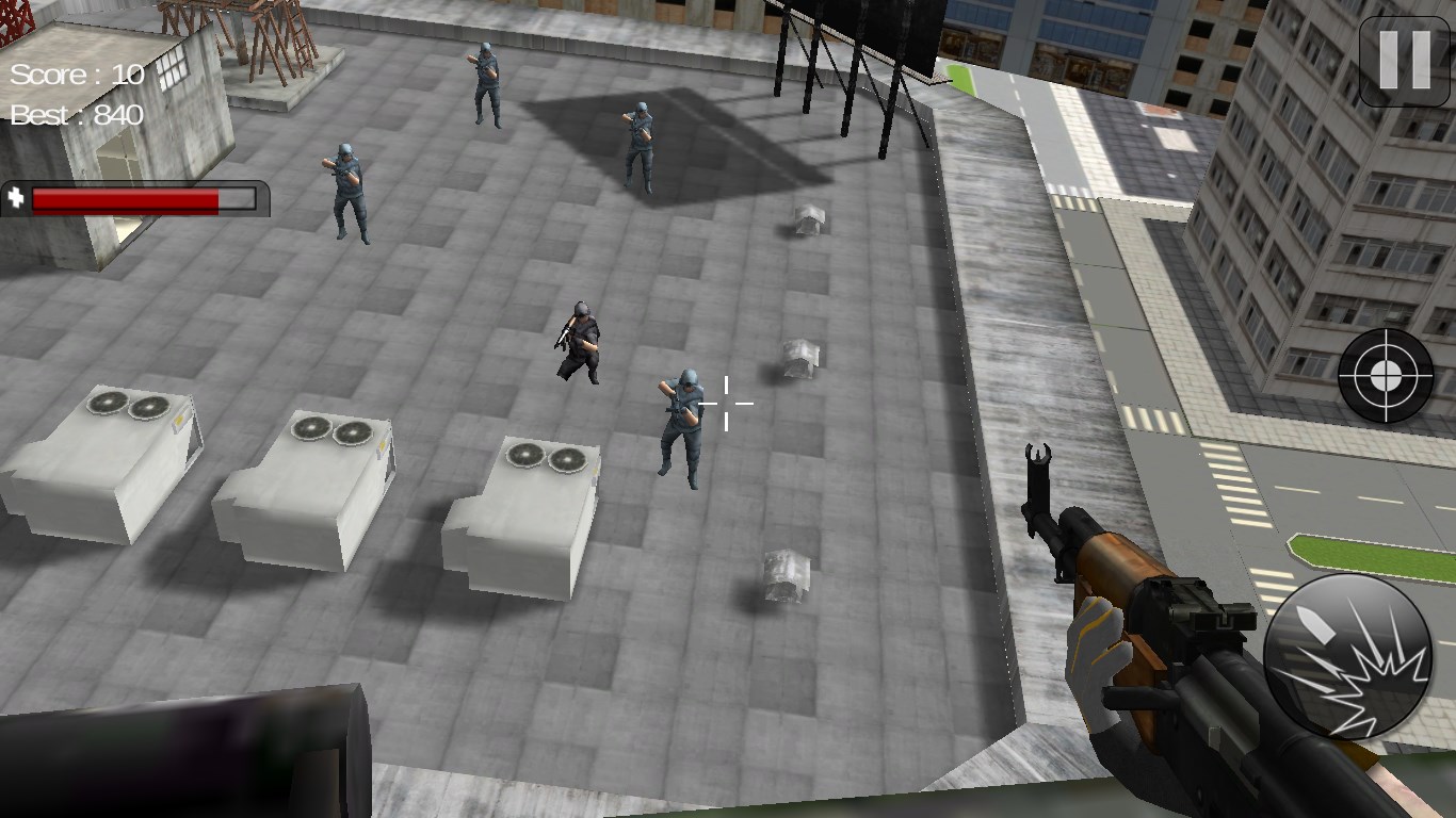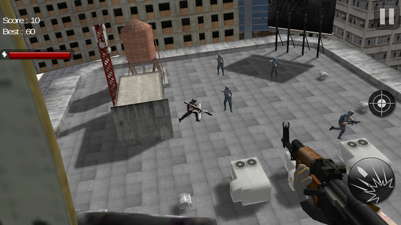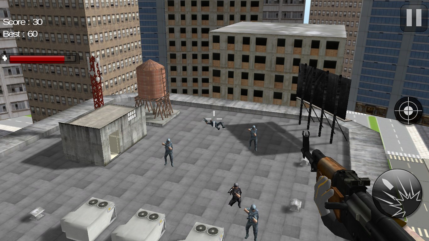 Release the building from the terrorists possession. For this mission you have air support with only one gunship helicopter with limited weapons. The weather is bad, time is short, Go make a strategy and eliminate all the enemy terrorist. Also check if there is any civilian hostages captured in the building. Your mission code is "Operation Red Blood".
