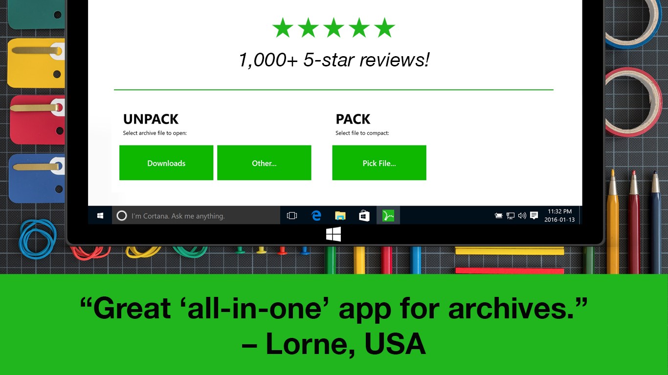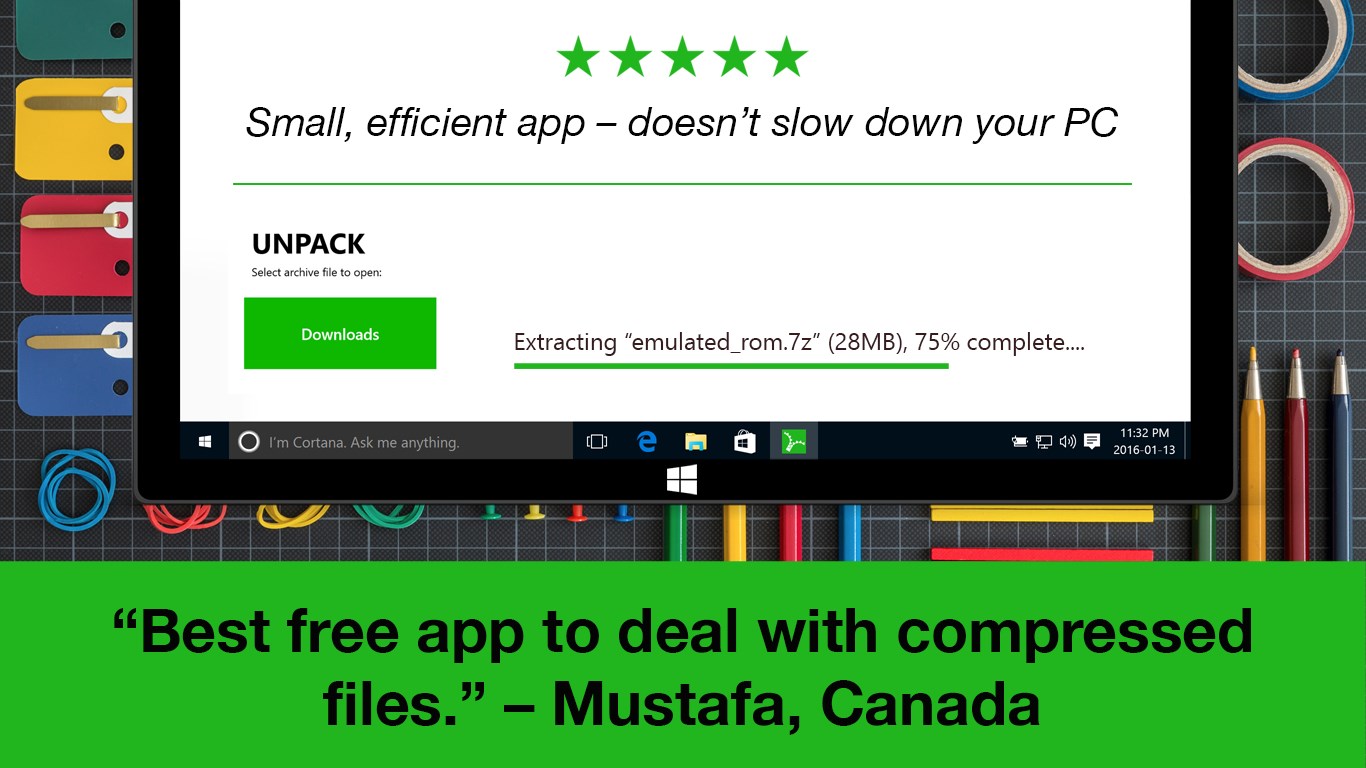 Lean, mean, opening machine - takes up almost no RAM when usedMade for speed: handles even huge archives in secondsAmazingly light - the small size saves you hard drive spaceSimple is best: A single tap opens any fileKeep it pretty - email us for companion desktop backgroundsNatively handles 7z files and many other file formats, like .rar, .zip, and many others