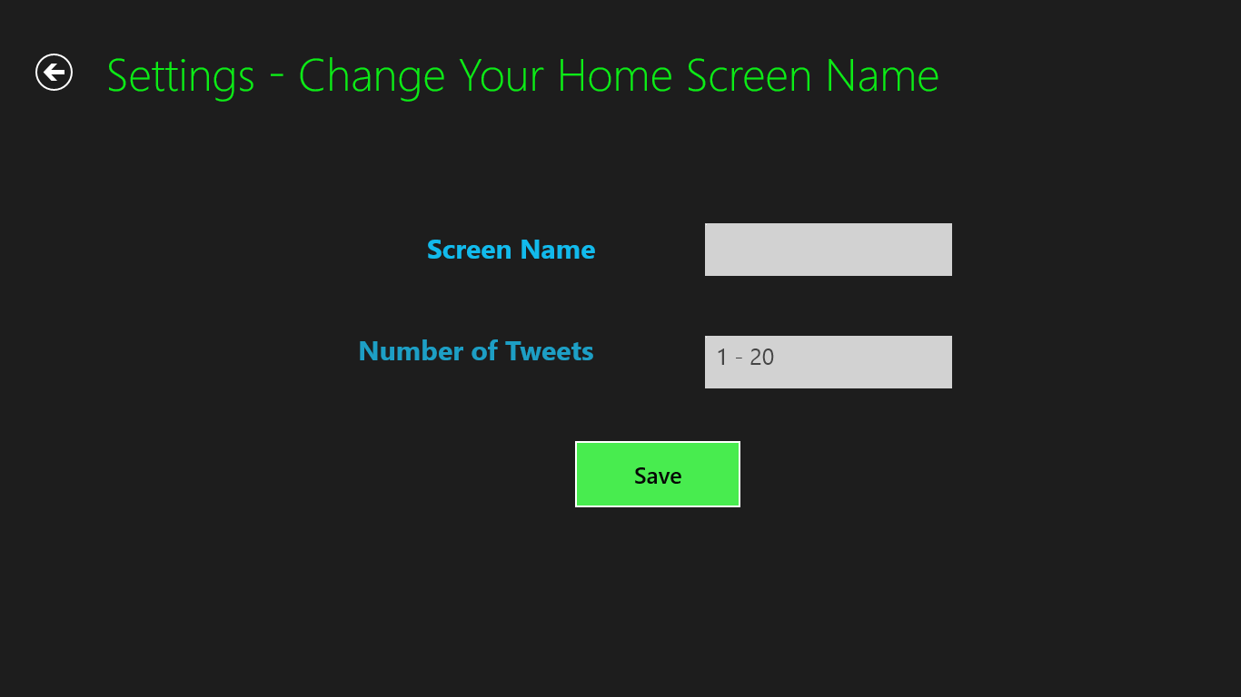 2) Navigate to "Setting" and provide your screen name and number of tweets you would like to see on your home page. Save it.