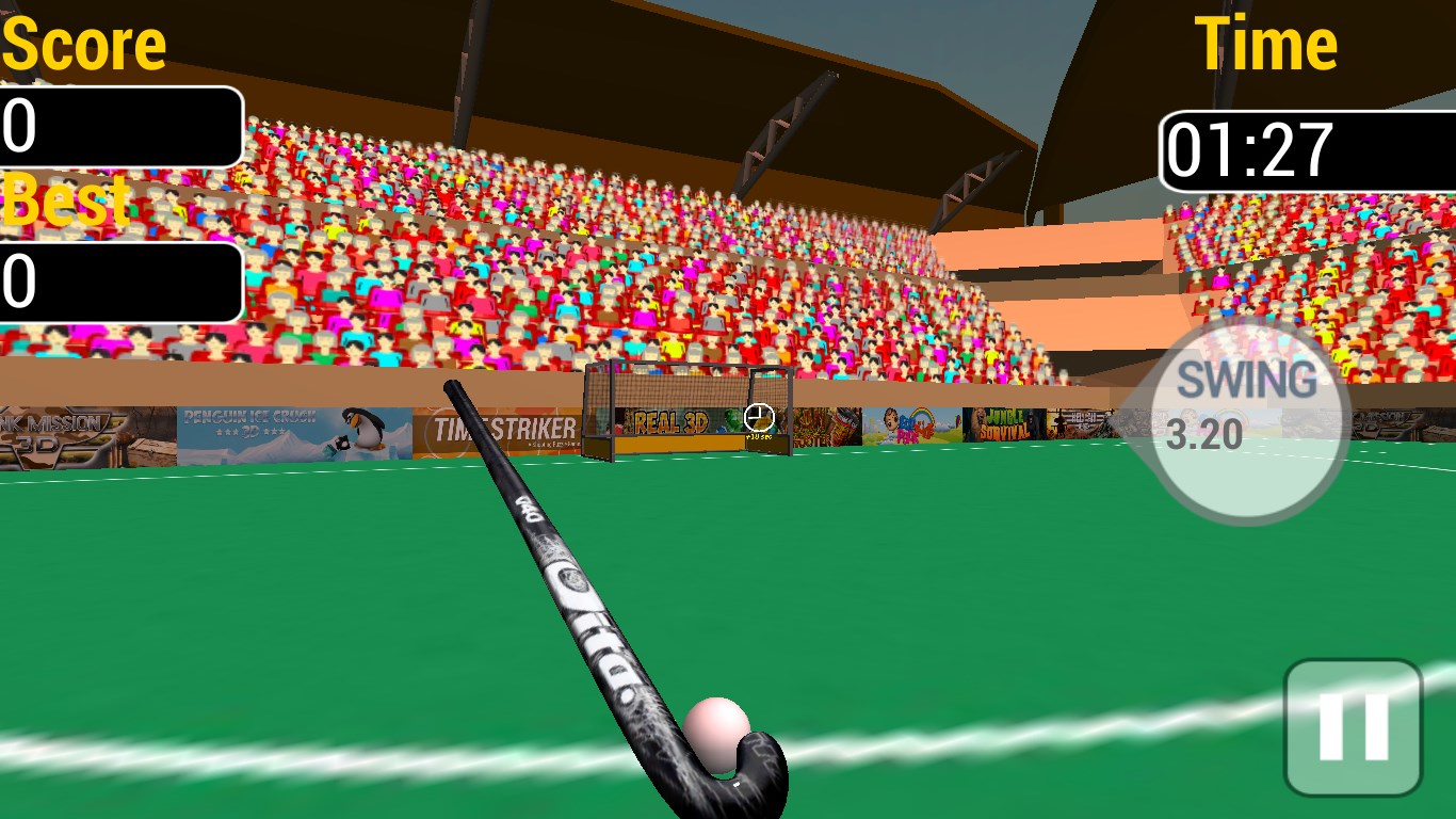 Flick the ball with Hockey StickComplete 3D Power Pack ActionExcellent SoundsRealistic 3D Game GraphicsBeautiful Hockey Stadium with astroturfCrowd will cheer at every successful