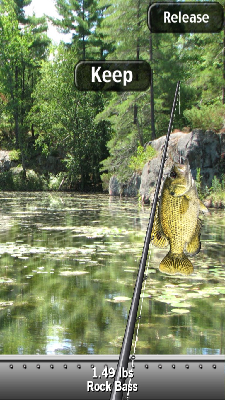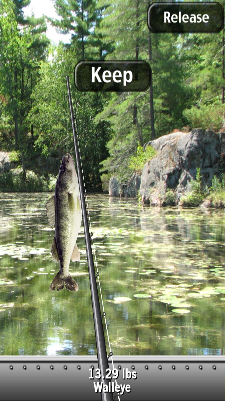 15 unlockable lakes with 3 difficulty levels will keep you playing for a long timeVariety of lures with different actions (jigs, topwater, spinnerbait, divers)Many species of freshwater fish to catch (perch, black crappie, bluegill, smallmouth bass, largemouth bass, walleye, pike, carp, catfish, and musky)Use a tablet\'s accelerometer or mouse to cast, jig, aim your lure, and fight fish.Exciting fish fights while keeping the line tension in check, even see them jump!Advanced fish AI, including schooling behavior, lure preferences, and hotspots based on structure such as dropoffs, weeds, lilypads, logs and rocks.Practice or Tournament modes in 3 difficulties.See over 40 real life backdrops and different ambient sounds based on where you are in the lake.Trophy room to keep track of your biggest fish ever caught.Fishing guide gives you audible advice and encouragement!
