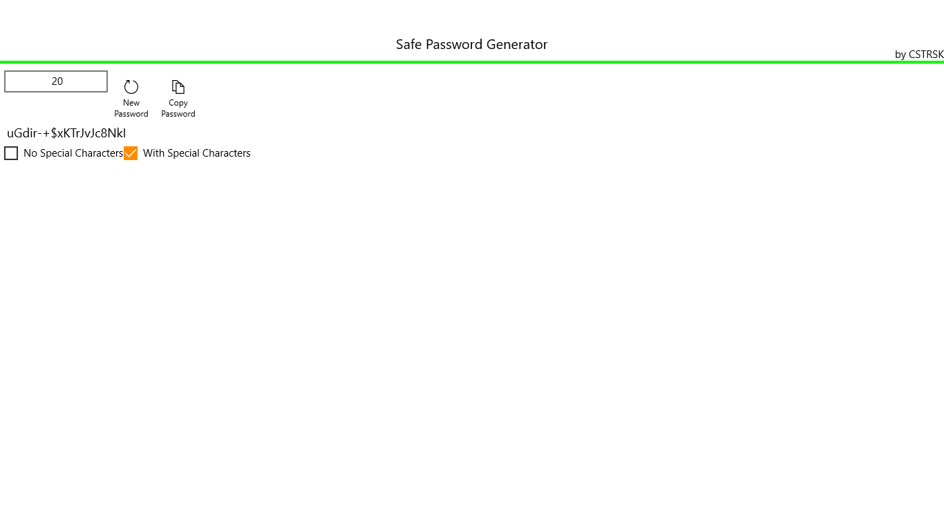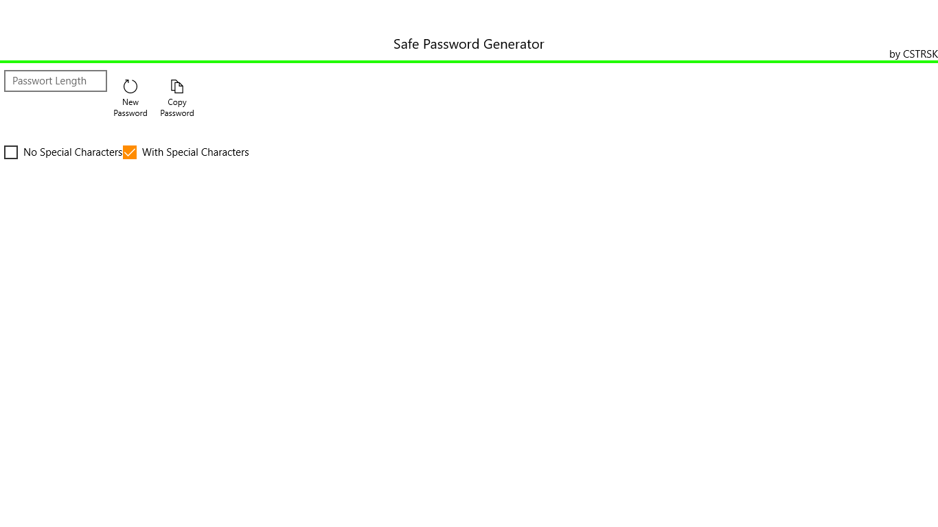 With the Safe Password Generator you create a more secure password for all purposes. I specify how many characters to have the password and if it should contain special characters or not.