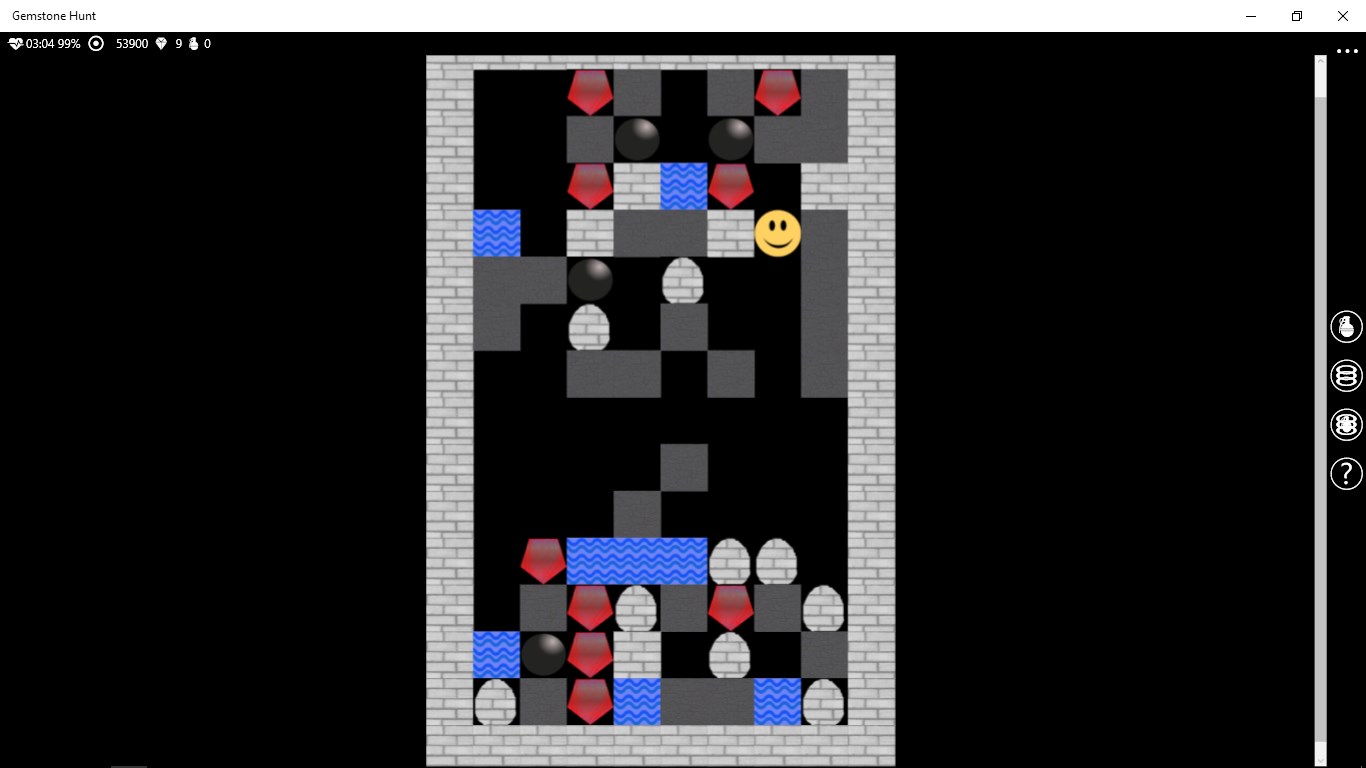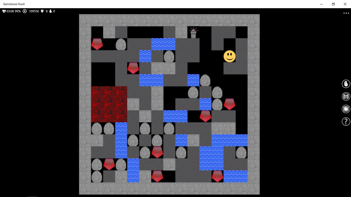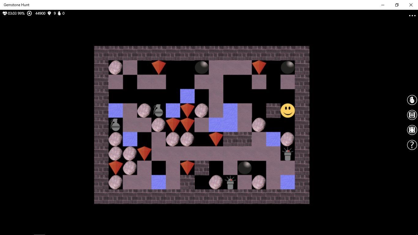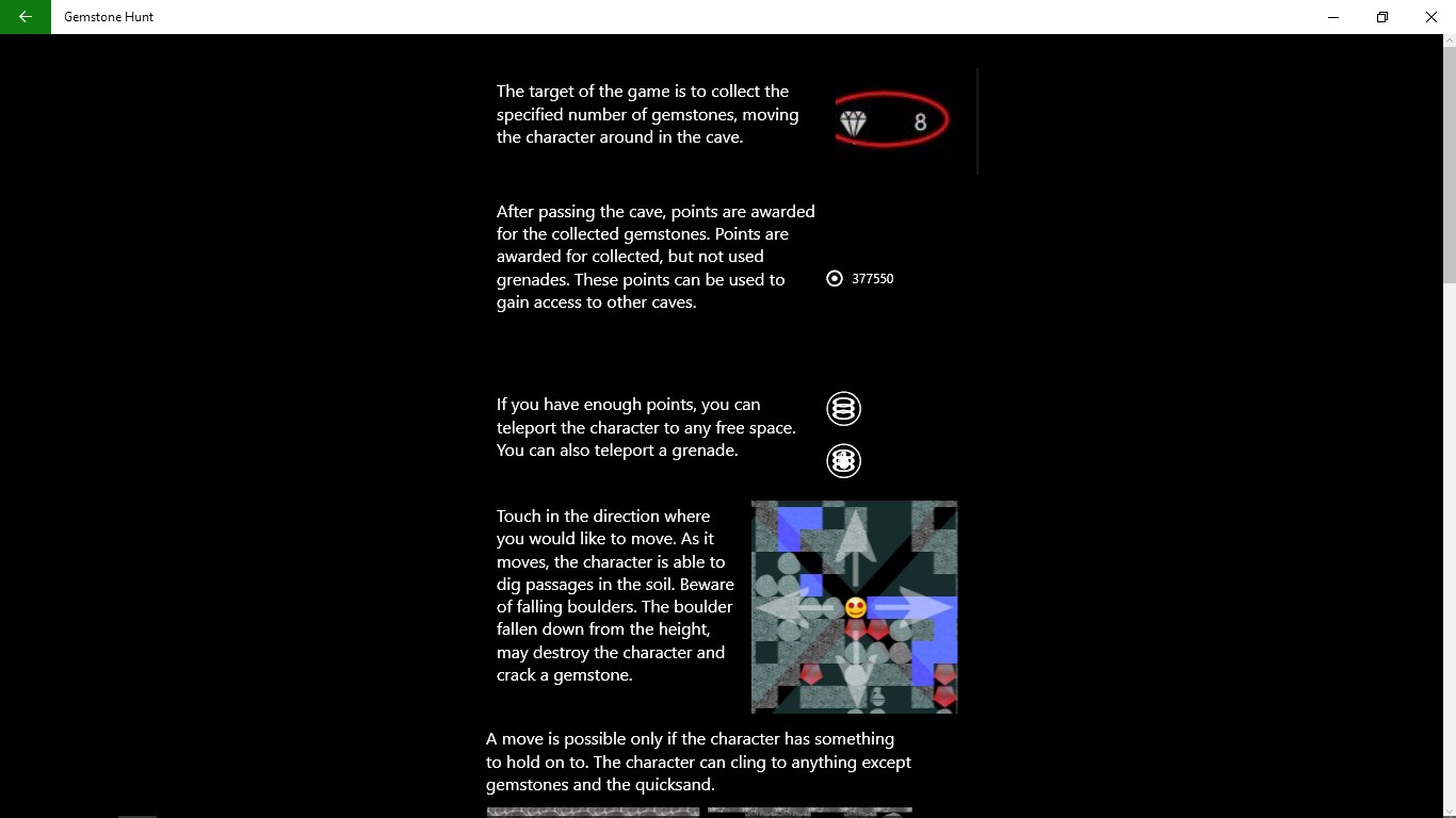 The target of the game is to collect the specified number of gemstones, moving the character around in the cave.