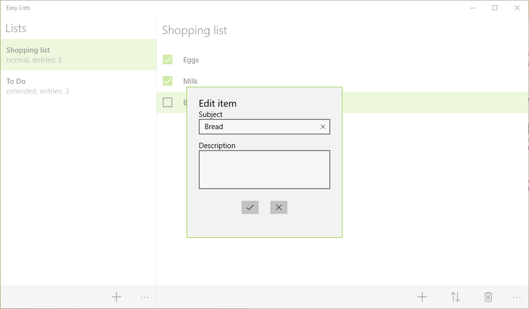 - items with subject and description, that can be checked