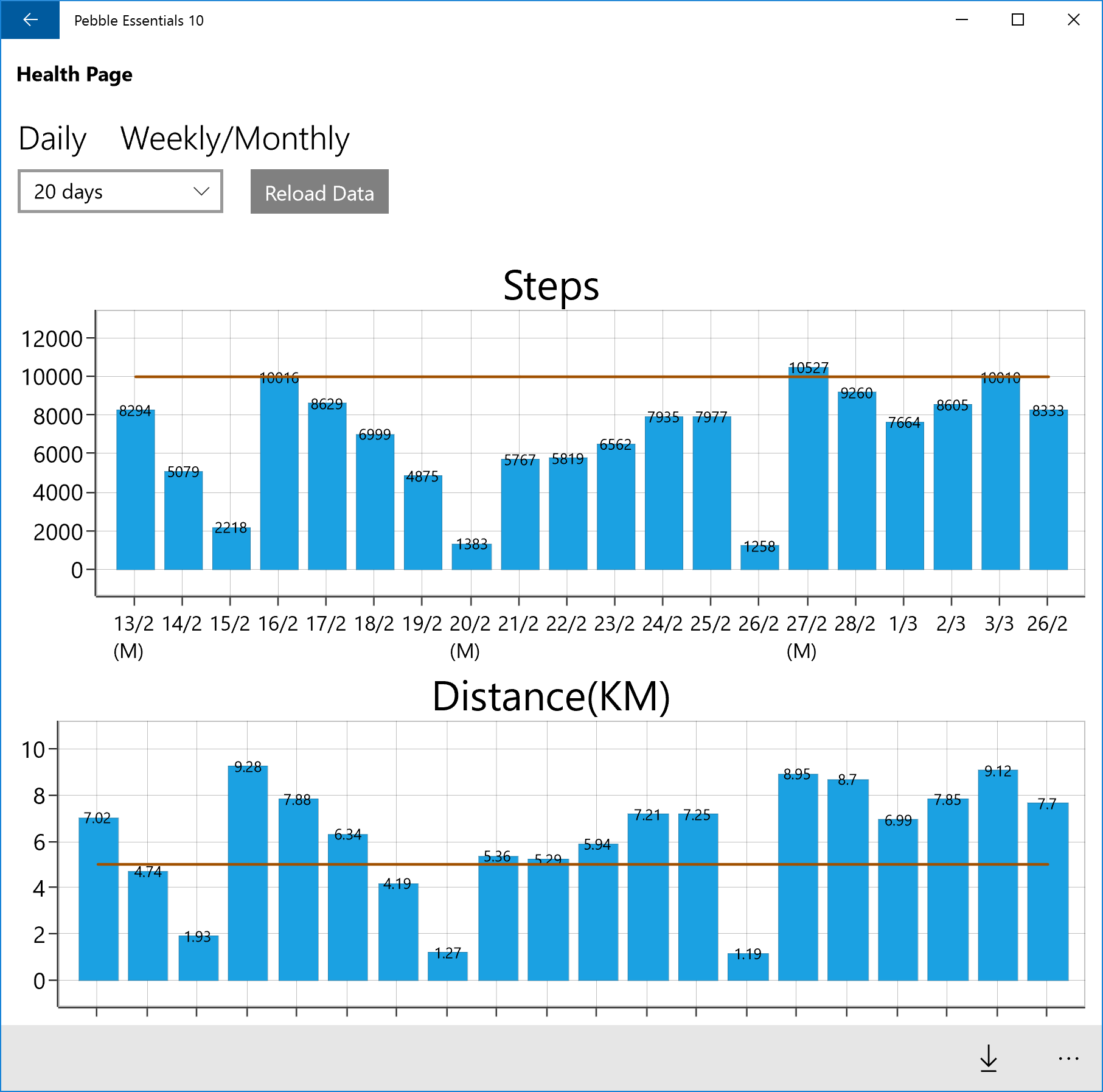 - Monitor your daily, weekly and monthly activities through Health page (Only for Pebble Time and Pebble Time Round)