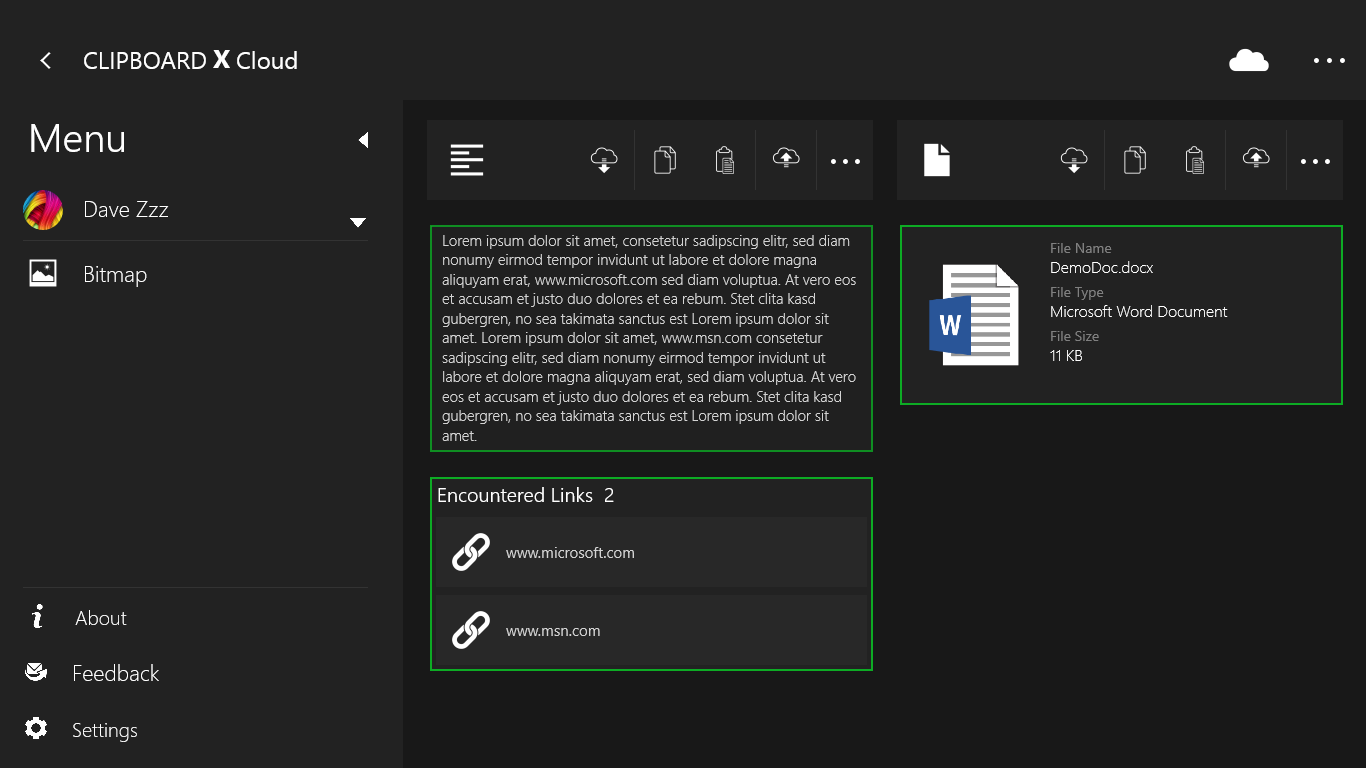 •Simple Copy & Paste across your devices (connected through your Microsoft account)•No additional account needed, Clipboard X Cloud uses your existing OneDrive cloudstorage•OneDrive Single-Sign-On for convenient and fast use