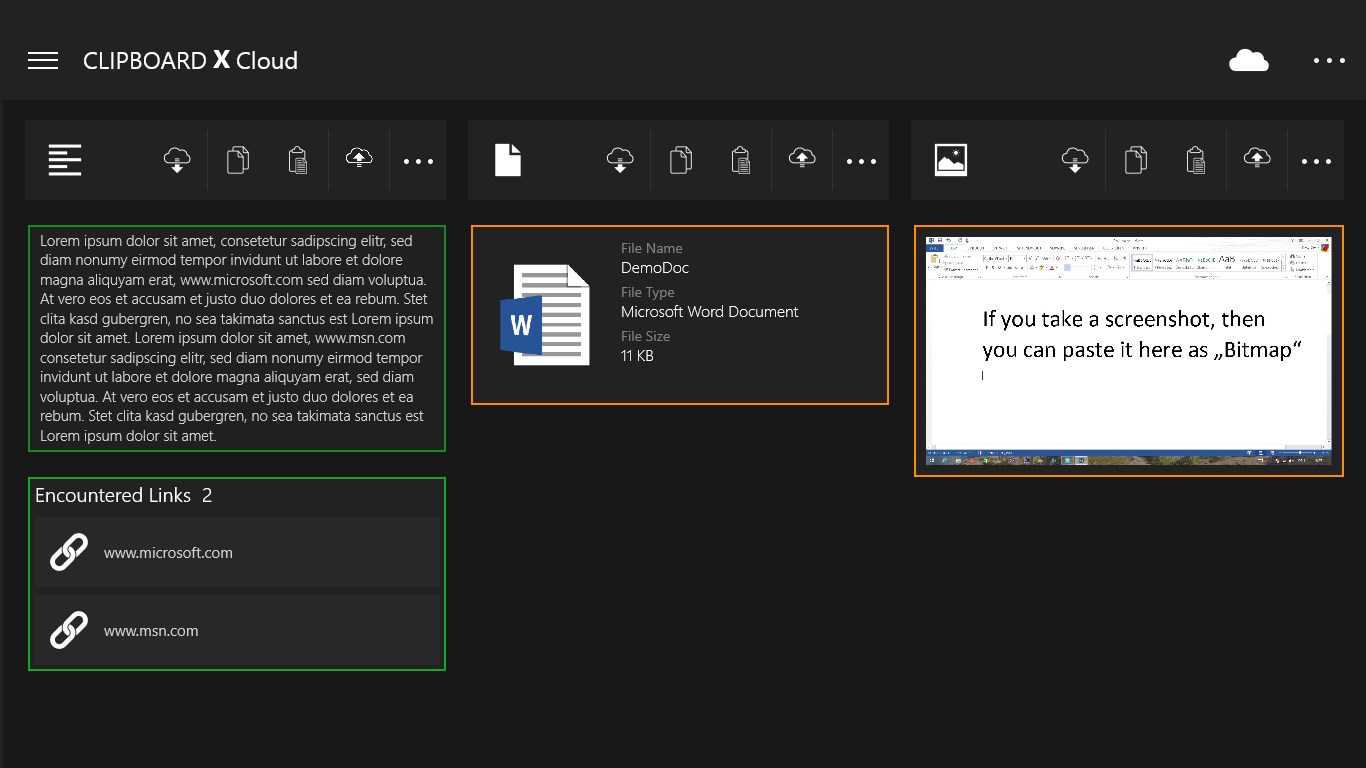 Clipboard X Cloud is available for Windows 8.1 and Windows Phone 8.1 as universal app.