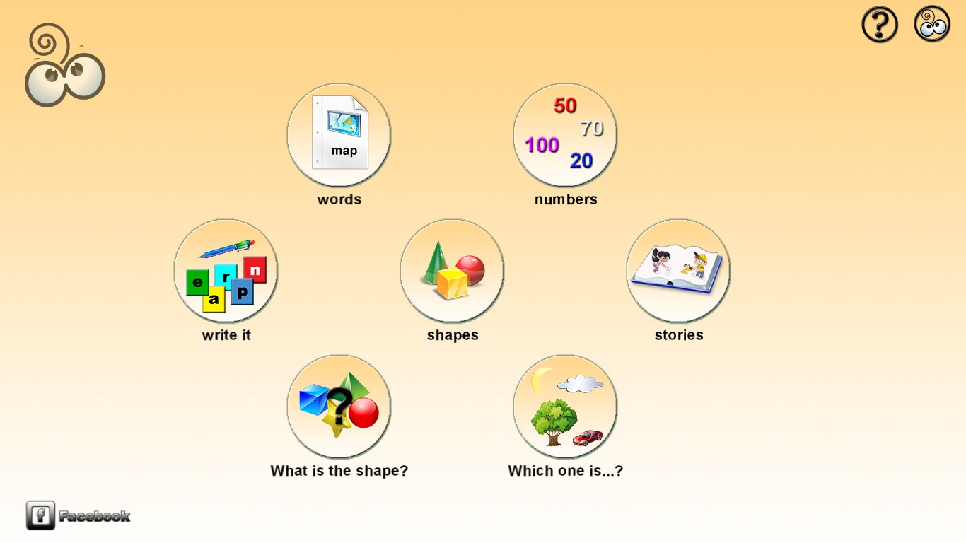 Controls: mouse, touch, keyboardSight words: words, numbers, shapesWrite practice: write name of object shown with drag and dropStories: learn to read and use words in "auto read" mode, or read to yourself - you can tap the word for helpPractice: tap the word that represent the shape of objects you seePractice: tap the object that is written on the screen