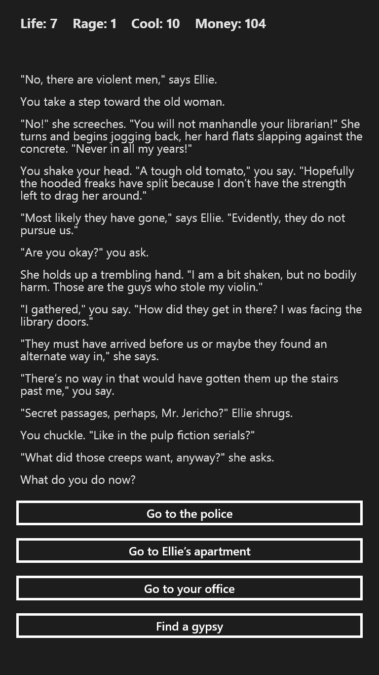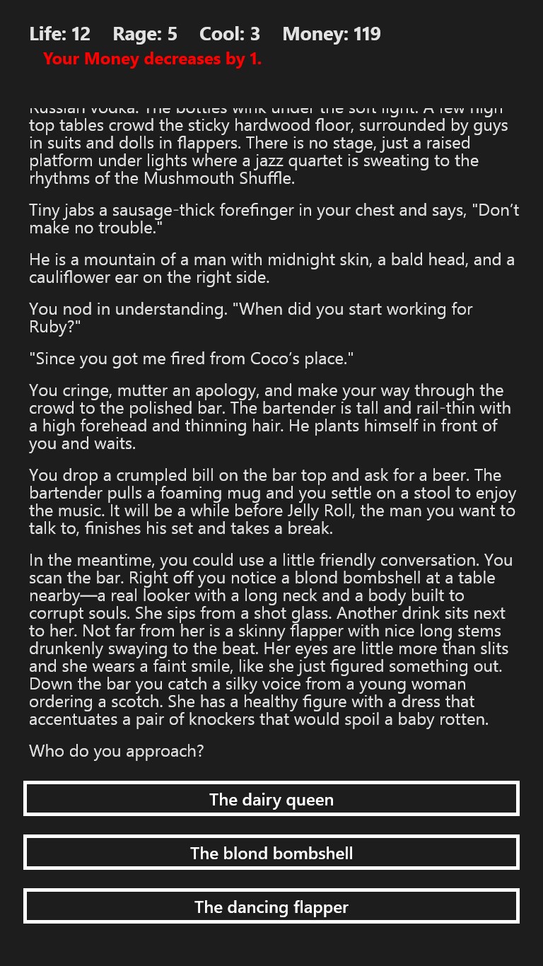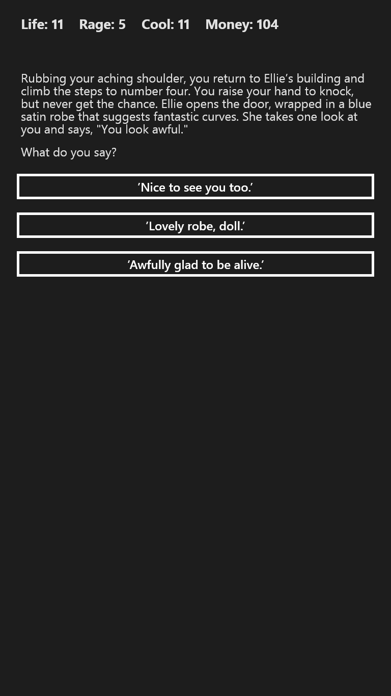 You play a private detective in this 1930's noir mystery novel. Can you solve the mystery and survive to the end?
