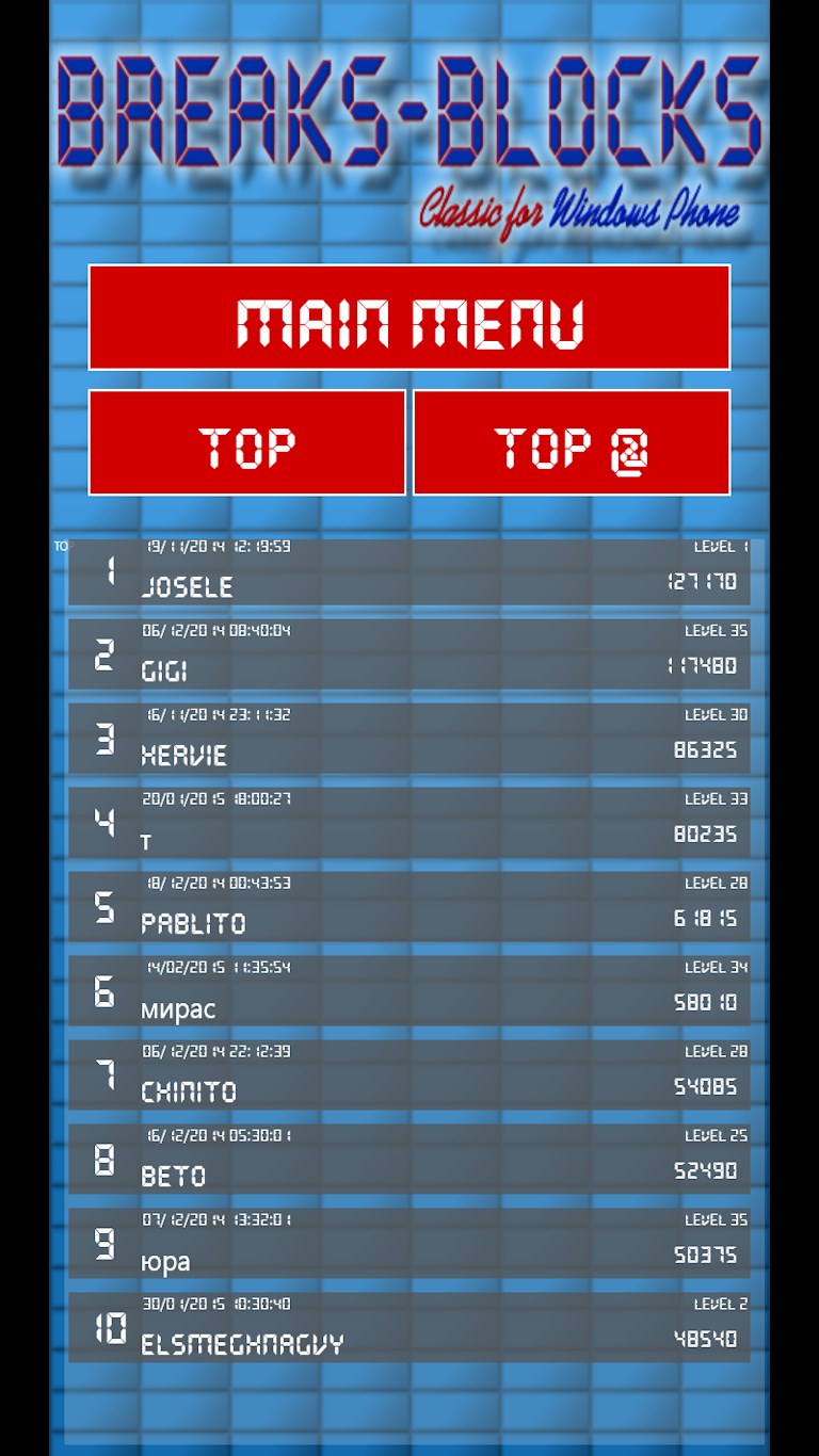 Clone of the great game Arkanoid35 fun levelsHe tries to sneak in the top scores