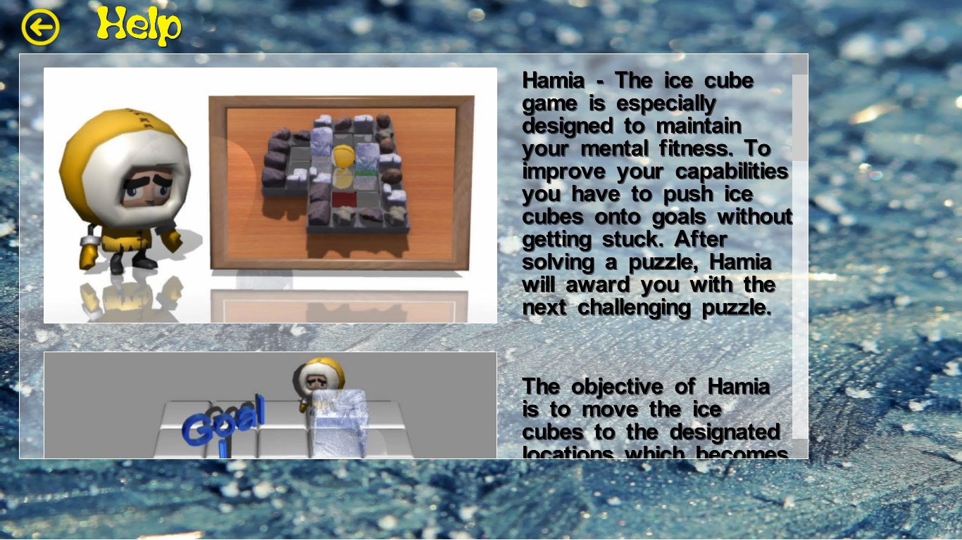 Your mission is to help Hamia pushing ice cubes around a playground onto the designated squares without getting stuck. Work your way sequentially through all wonderful challenges. Each challenge has a different structure, which requires a new solution - often with a new strategy as well. The magic of the game is that items, which are out of the way on one move, might be in the way on the next move.