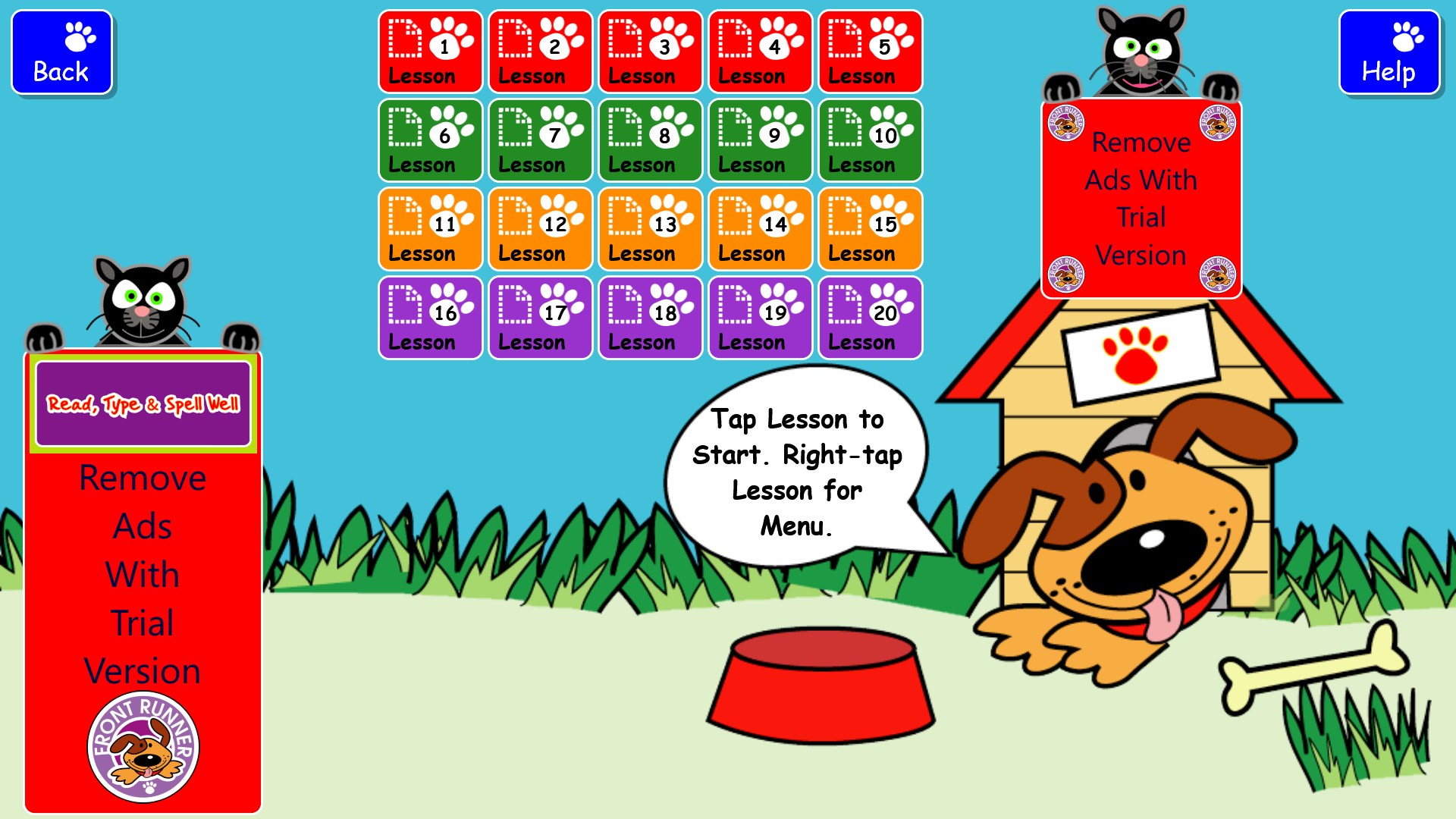 Touch screen and/or physical keyboard useVoice synthesis feedback of word pronunciation and screen textTwenty sequential Lessons to completeCharming and colourful graphicsUses custom fonts designed to make reading easierFour integrated games aimed at improving hand-eye coordination and visual function