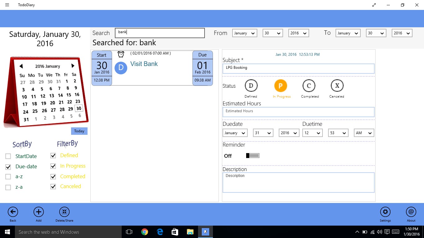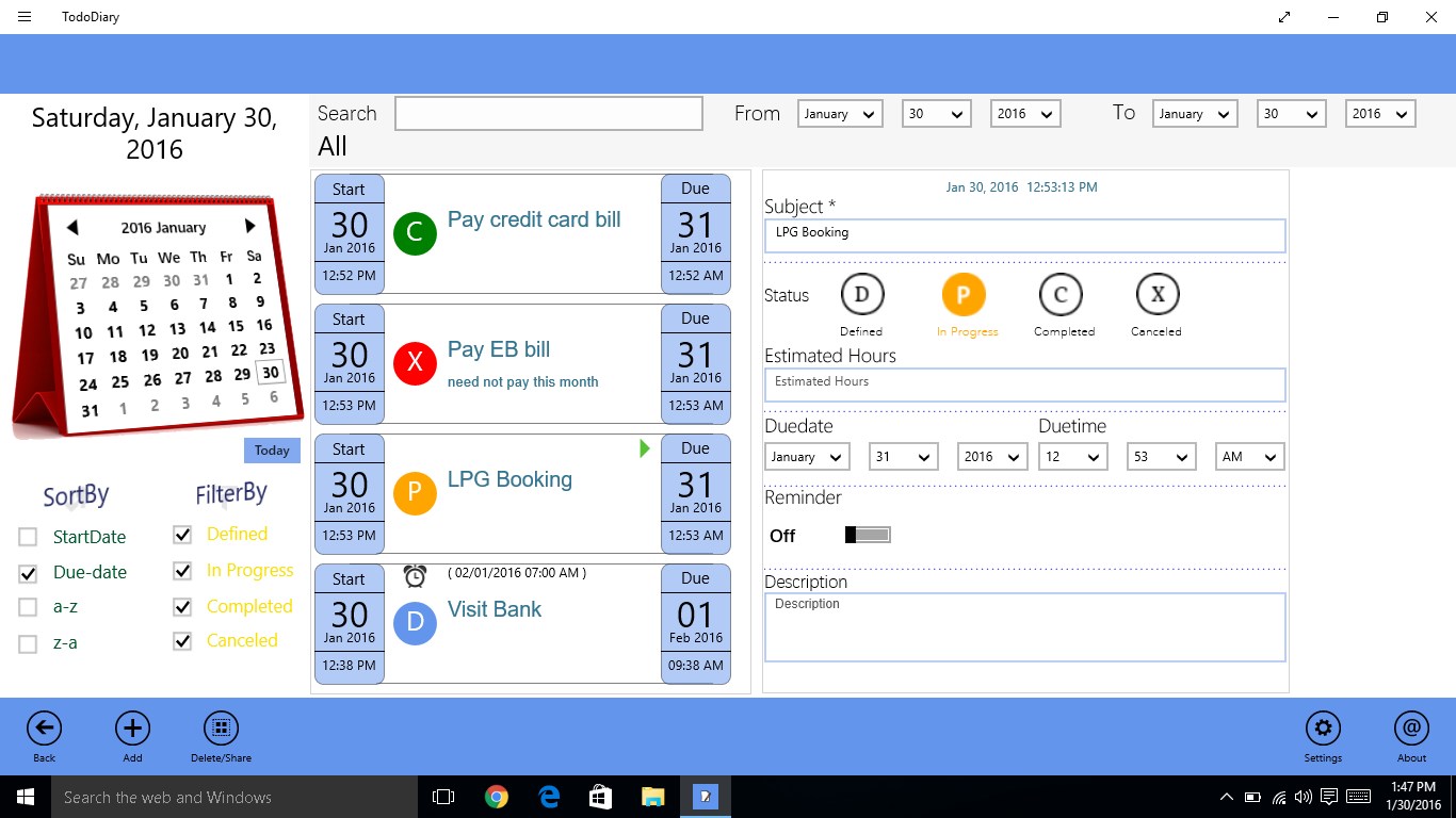 Reminder for Todo (Toast notification)Search for TodoCustomizable User InterfaceSort By and Filter By options